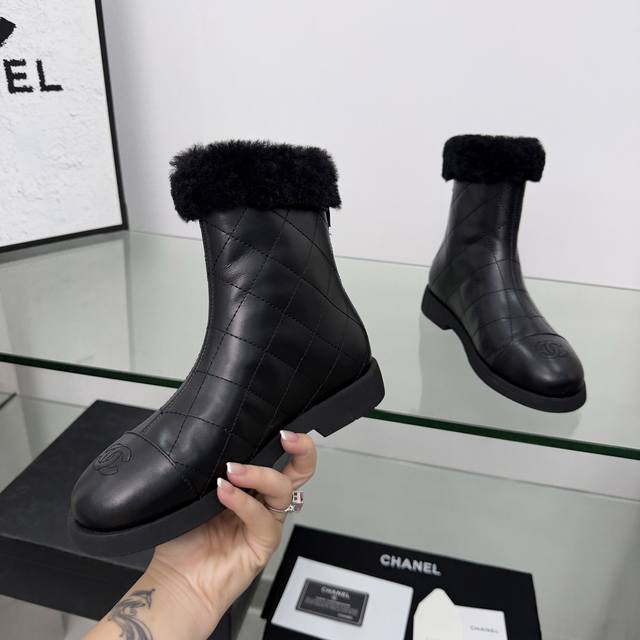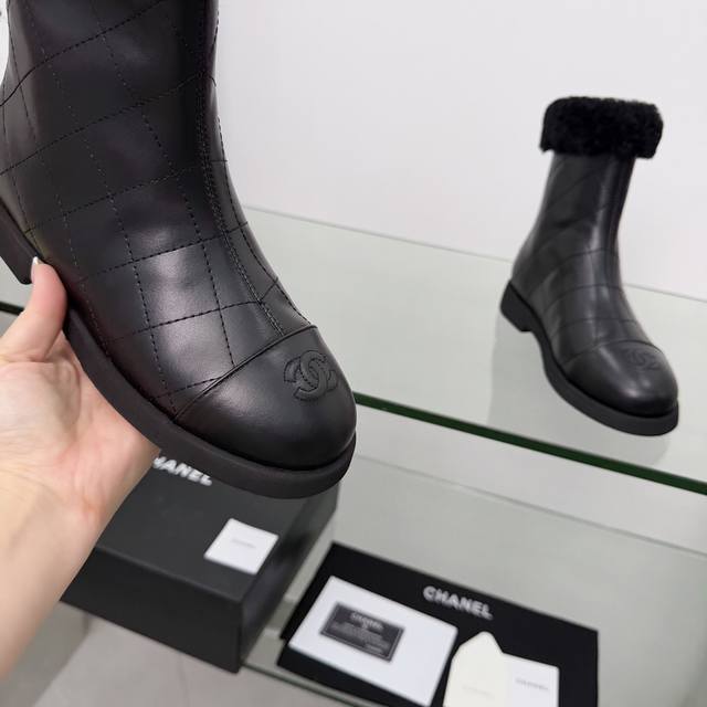 高版本香奈儿Chanel,小香2025秋冬专柜最新款短靴靴,本季秋冬季节必备单品!!香奈儿女士钟爱简约又难以抗拒系 搭配展现与众不同的穿搭风格、自由混搭闪耀到位跟紧香奶奶时尚步伐!!!顶级工艺质感完美呈现,无论任何细节均可对比专柜,最好级别的顶级货,随意进出专柜!! DDD 面料:进口牛皮加羊毛 DDD 内里:羊皮里 DDD 垫脚:羊皮里 DDD 大底:原版开模大底 DDD 跟高:3.5厘米 DDD 靴筒高度:7寸 DDD 码数:35-40 40 41为定制不退换 DDD