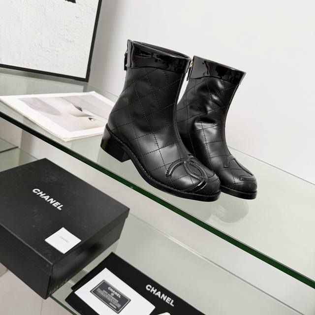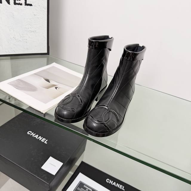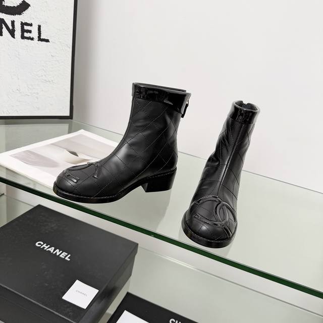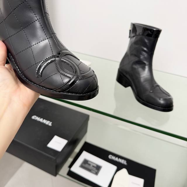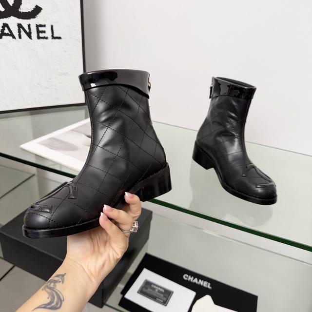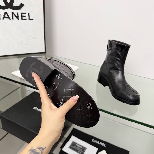 高版本香奈儿Chanel,小香2025秋冬专柜最新款短靴靴,本季秋冬季节必备单品!!香奈儿女士钟爱简约又难以抗拒系 搭配展现与众不同的穿搭风格、自由混搭闪耀到位跟紧香奶奶时尚步伐!!!顶级工艺质感完美呈现,无论任何细节均可对比专柜,最好级别的顶级货,随意进出专柜!! DDD 面料:进口牛皮加漆皮 DDD 内里:羊皮里 DDD 垫脚:羊皮里 DDD 大底:原版真皮大底 DDD 跟高:4.5厘米 DDD 靴筒高度:6寸 DDD 码数:35-40 40 41为定制不退换 DDD