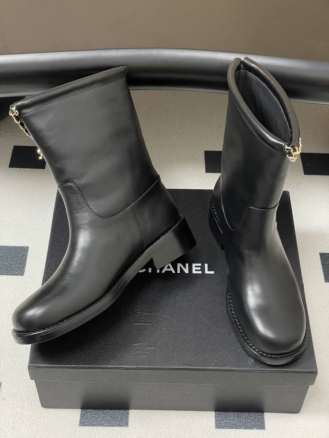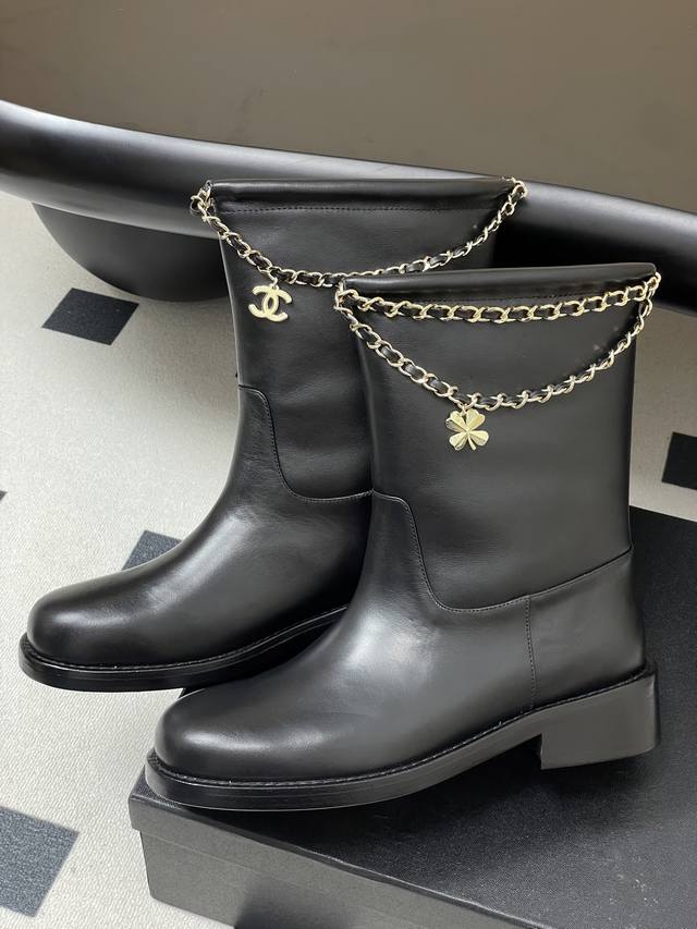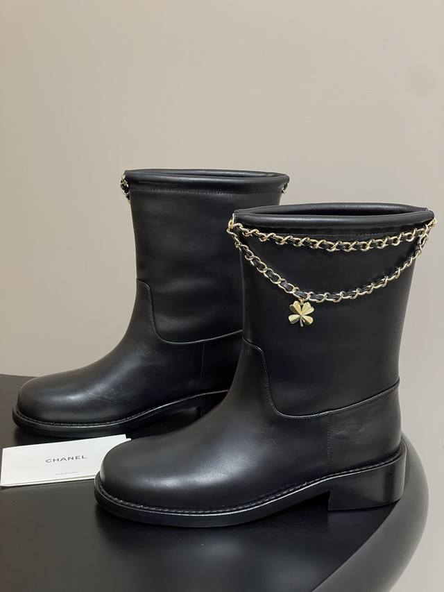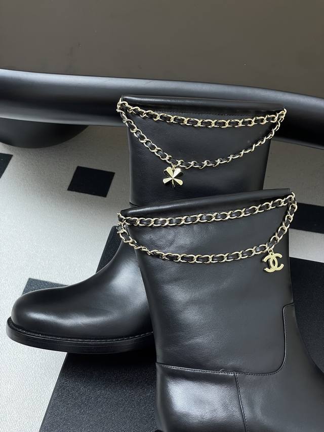 秋冬新款 Chanel小香25B新品四叶草双C扣链条靴子绒面短靴