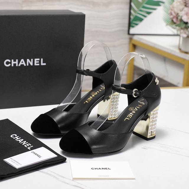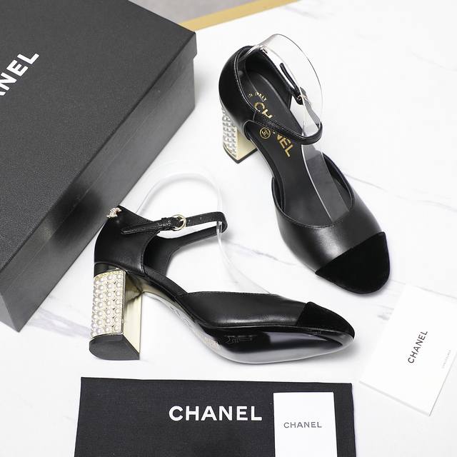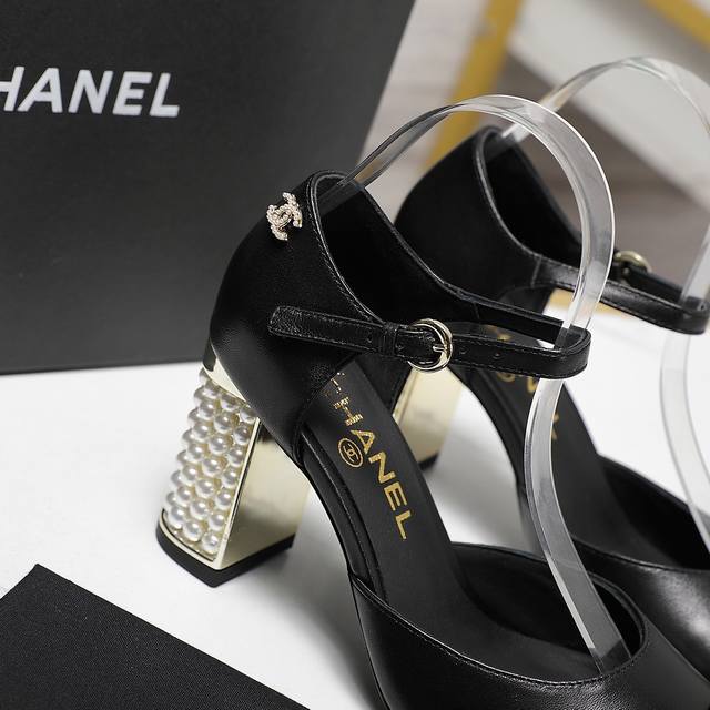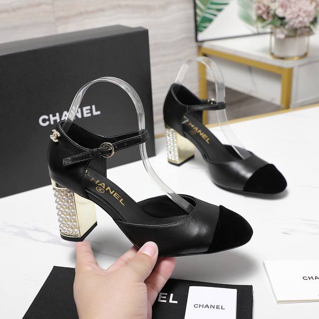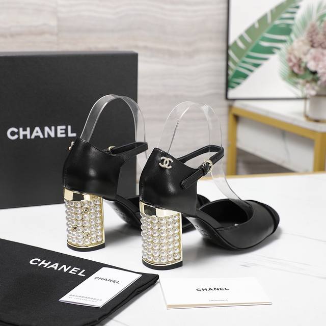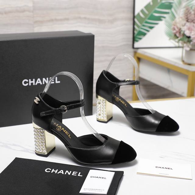 #香奈儿新款玛丽珍珍珠跟女鞋