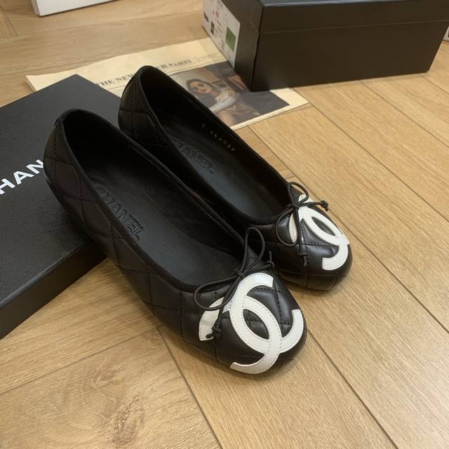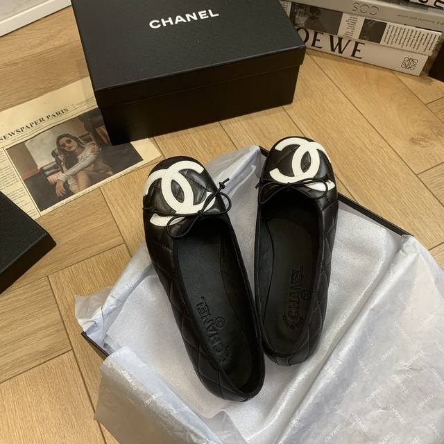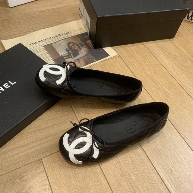 高版本 Chane*|小香经典大双C蝴蝶结 芭蕾舞鞋 一起做个奶乖奶乖的香香女孩呀 看到这双鞋的时候我是直接原地心动 经典与艺术感兼具 日常出街造型随你凹! 鞋