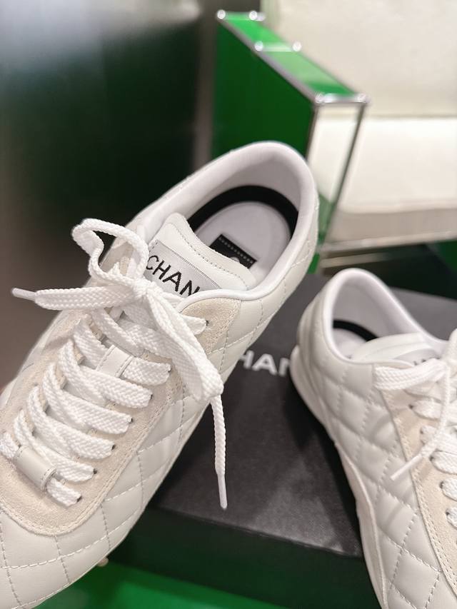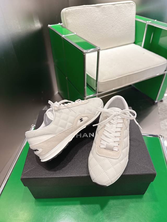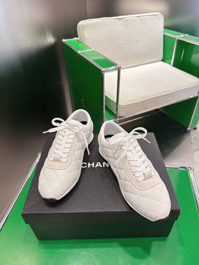 / 010 Chanel 香奈儿菱 格纹德训鞋 休闲鞋 顶级版本,最新隐藏款网软菱格纹 柔软小羊皮配搭大鞋舌和经典 Logo满满的复古感又是最最最百搭的黑白配色 C
