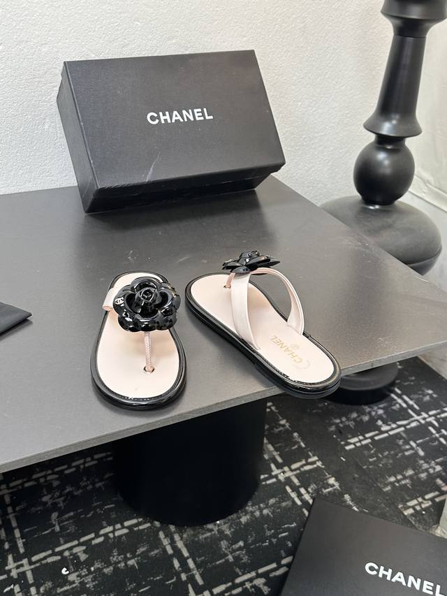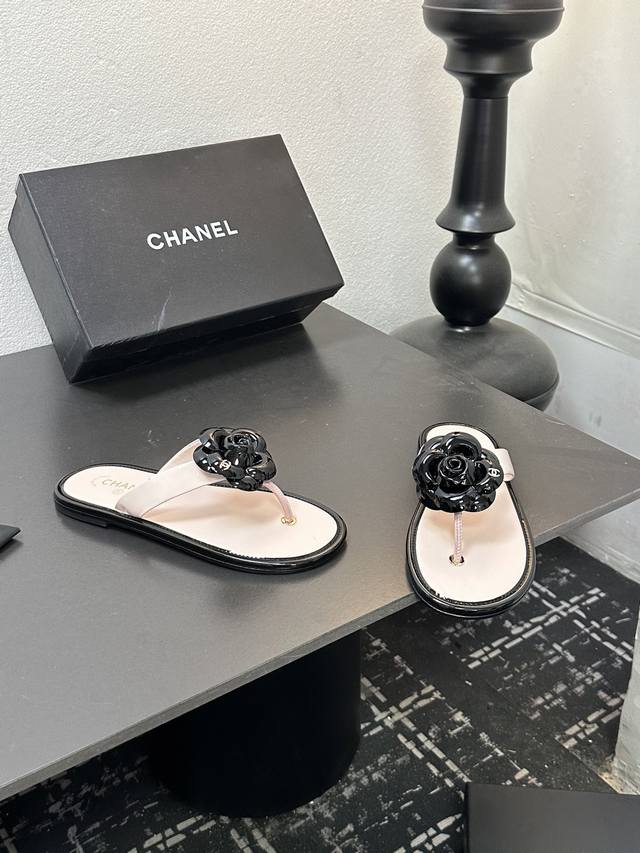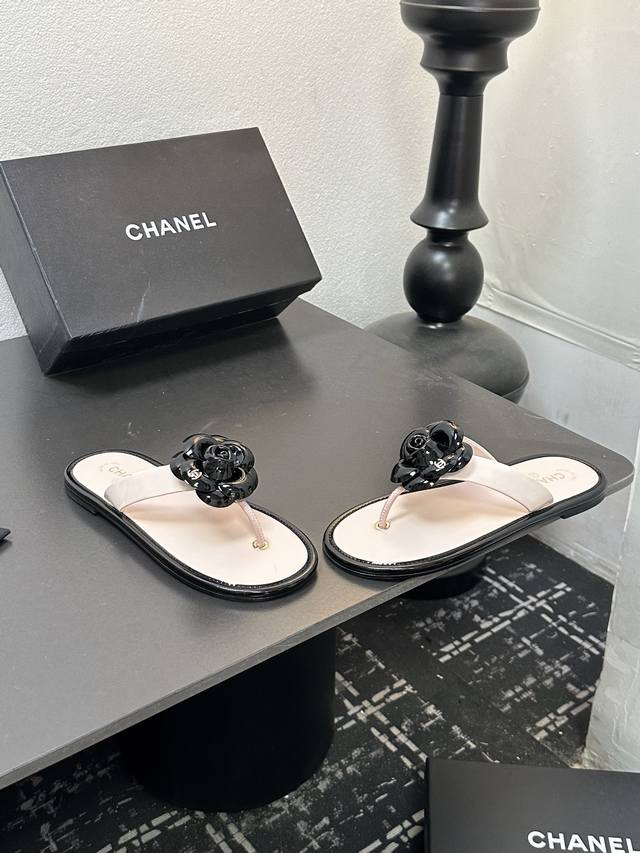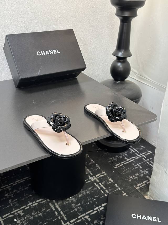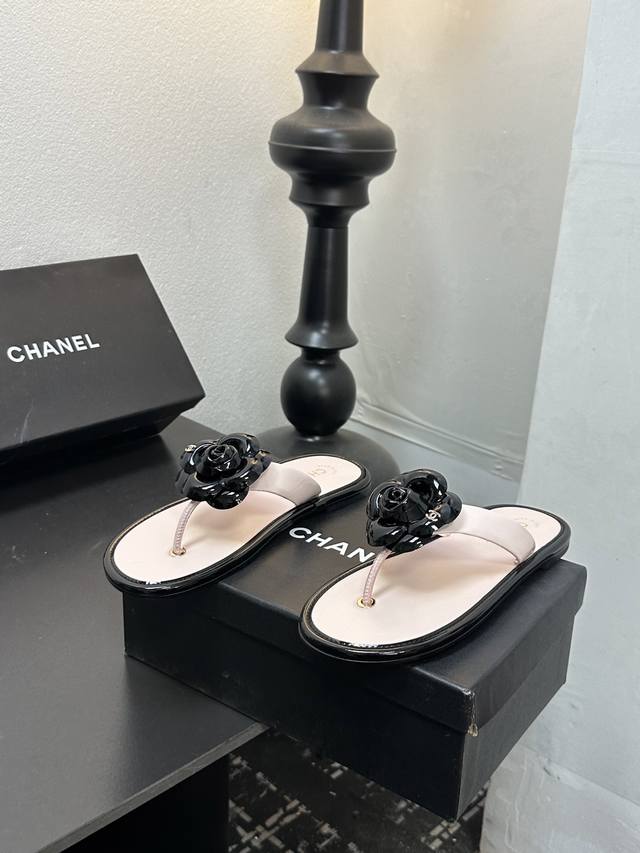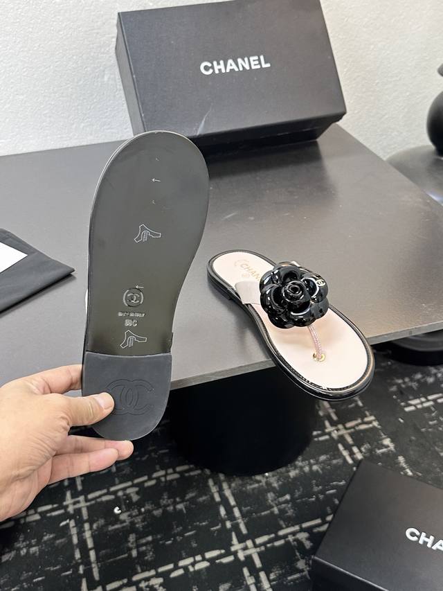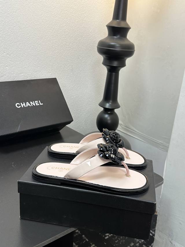 2025小香 本季秋冬季必备单品!!山茶花夹脚拖 DDD 香奈儿秋冬重工爆款 DDD 小红书力推款,怎么搭配都好看,时髦精必备,香奈儿女士钟爱简约又难以抗拒系搭配展现与众不同的穿搭风格、自由混搭闪耀到位跟紧香奶奶时尚步伐!!!精致细节放大看原版开模五金扣 顶级版本代购级别打造★鞋面采用原版牛漆皮,羊皮内里,垫脚,原版开模真皮大底,码数35-39 40、41定做 DDD