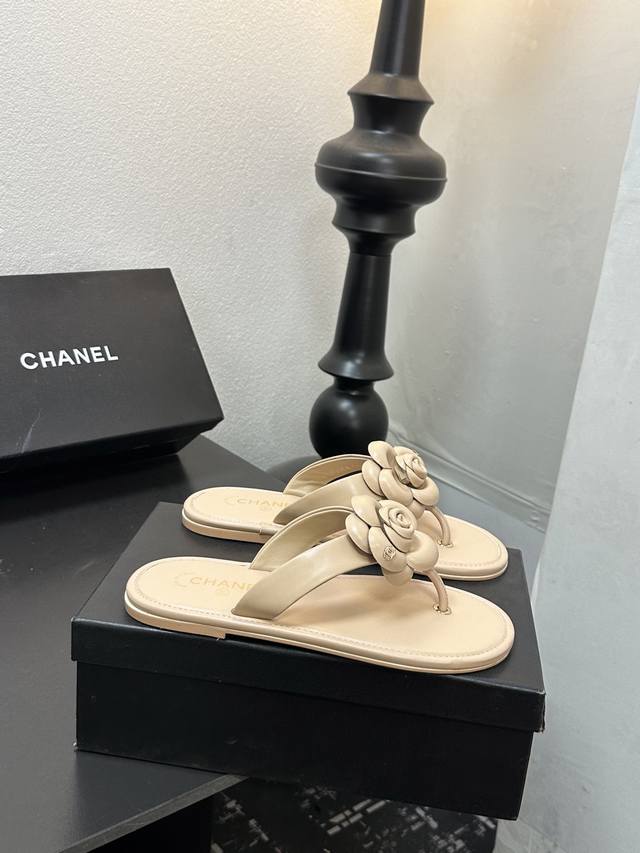 / 2025小香 本季秋冬季必备单品!!山茶花夹脚拖 香奈儿秋冬重工爆款 小红书力推款,怎么搭配都好看,时髦精必备,香奈儿女士钟爱简约又难以抗拒系搭配展现与众不同的