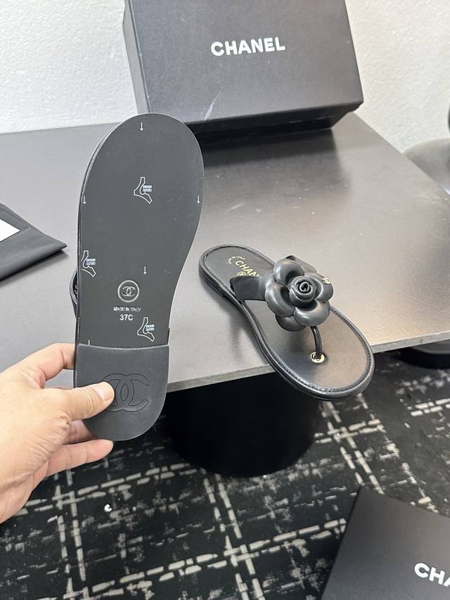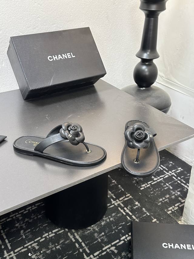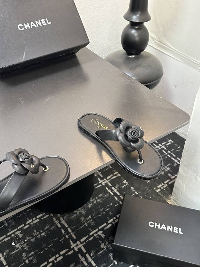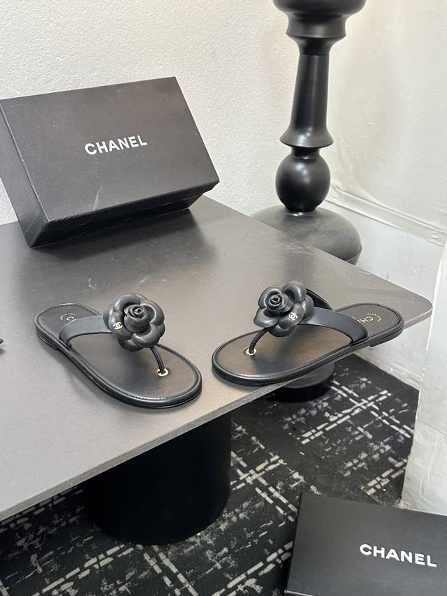 / 2025小香 本季秋冬季必备单品!!山茶花夹脚拖 香奈儿秋冬重工爆款 小红书力推款,怎么搭配都好看,时髦精必备,香奈儿女士钟爱简约又难以抗拒系搭配展现与众不同的