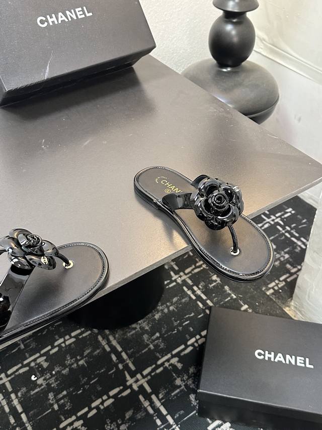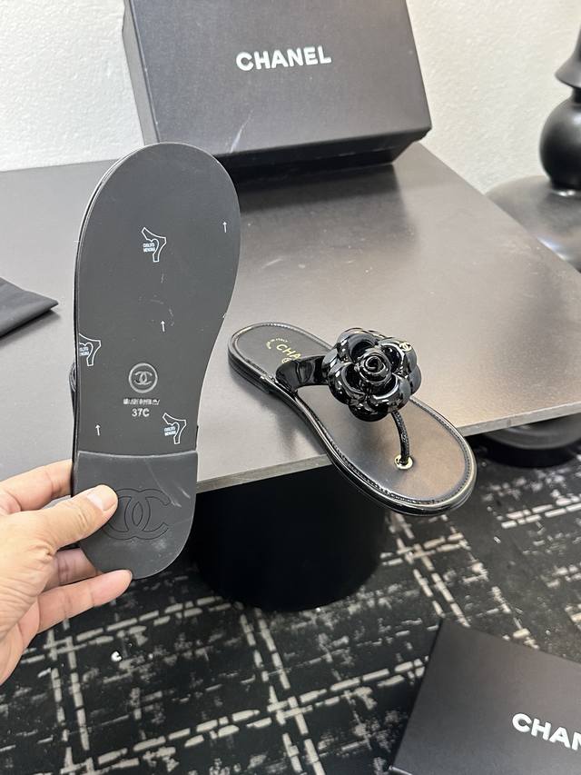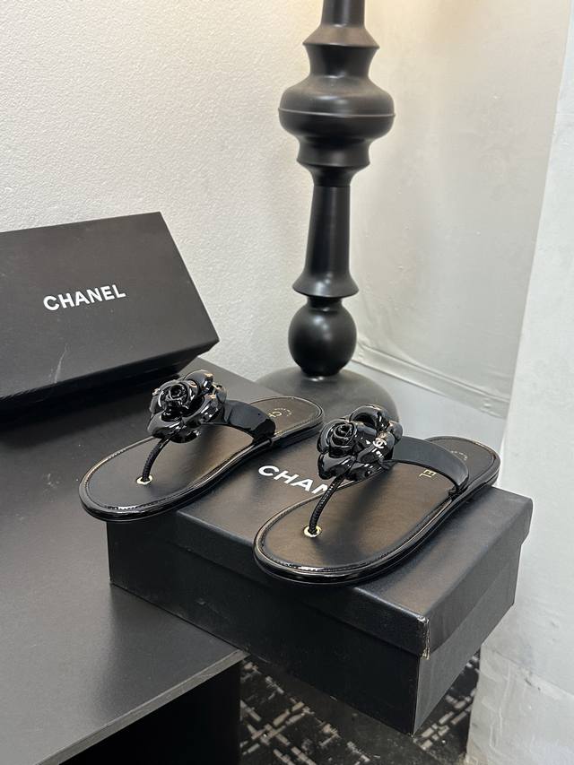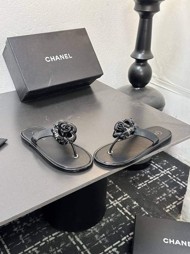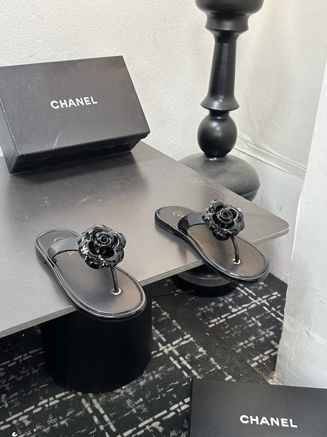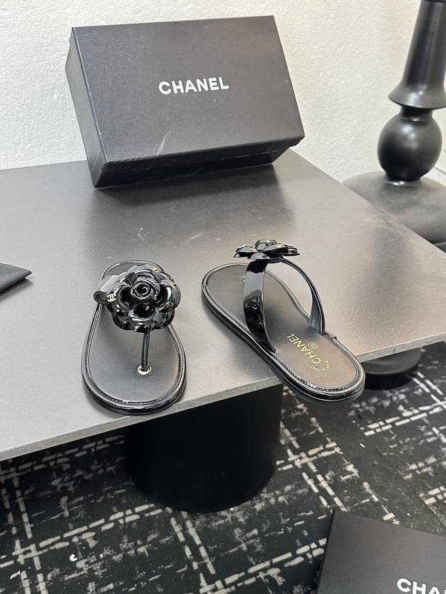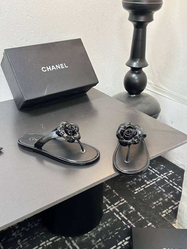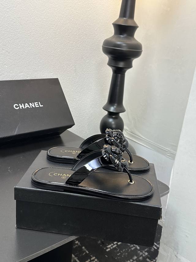 2025小香 本季秋冬季必备单品!!山茶花夹脚拖 DDD 香奈儿秋冬重工爆款 DDD 小红书力推款,怎么搭配都好看,时髦精必备,香奈儿女士钟爱简约又难以抗拒系搭配展现与众不同的穿搭风格、自由混搭闪耀到位跟紧香奶奶时尚步伐!!!精致细节放大看原版开模五金扣 顶级版本代购级别打造★鞋面采用原版牛漆皮,羊皮内里,垫脚,原版开模真皮大底,码数35-39 40、41定做 DDD