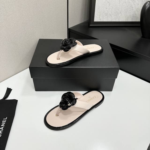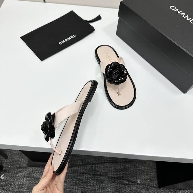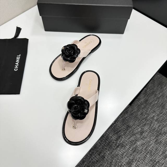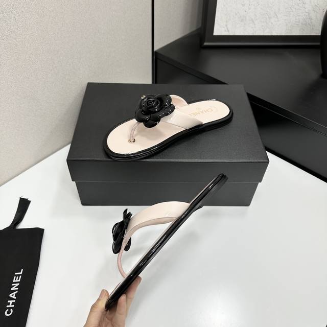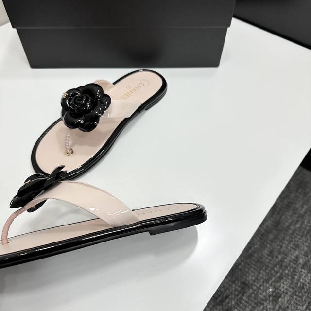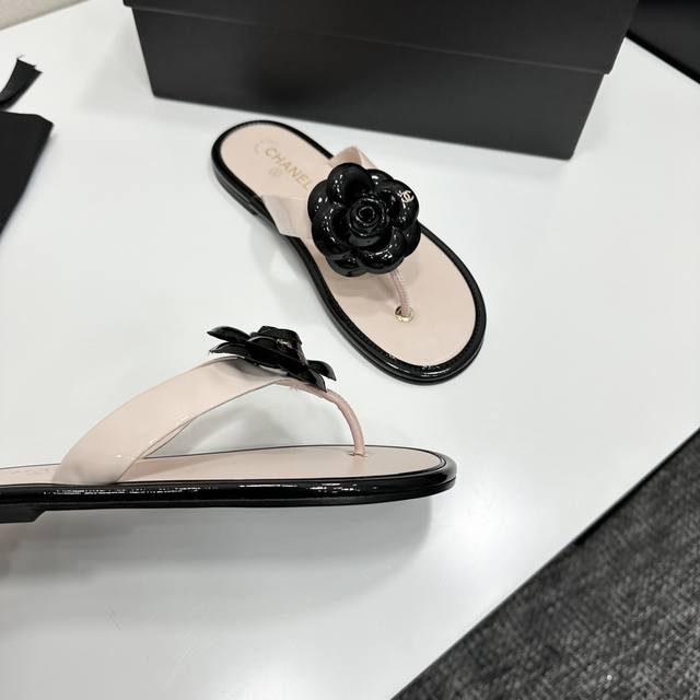 2025小香 本季秋冬季必备单品!!山茶花夹脚拖 DDD 香奈儿秋冬重工爆款 DDD 小红书力推款,怎么搭配都好看,时髦精必备,香奈儿女士钟爱简约又难以抗拒系搭配展现与众不同的穿搭风格、自由混搭闪耀到位跟紧香奶奶时尚步伐!!!精致细节放大看原版开模五金扣 顶级版本代购级别打造★鞋面采用原版牛漆皮,羊皮内里,垫脚,原版开模真皮大底,码数35-39 40、41定做 DDD