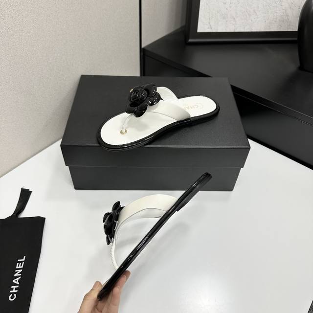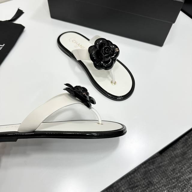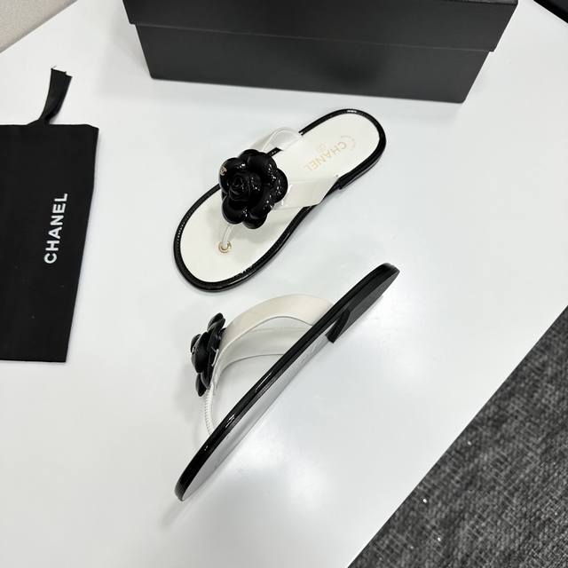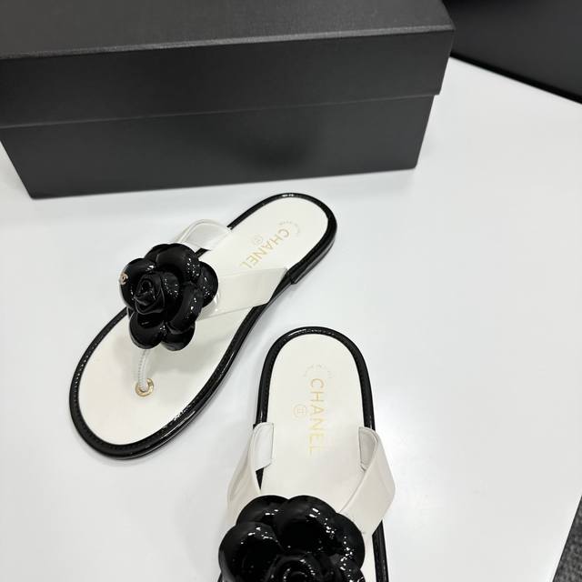 2025小香 本季秋冬季必备单品!!山茶花夹脚拖 DDD 香奈儿秋冬重工爆款 DDD 小红书力推款,怎么搭配都好看,时髦精必备,香奈儿女士钟爱简约又难以抗拒系搭配展现与众不同的穿搭风格、自由混搭闪耀到位跟紧香奶奶时尚步伐!!!精致细节放大看原版开模五金扣 顶级版本代购级别打造★鞋面采用原版牛漆皮,羊皮内里,垫脚,原版开模真皮大底,码数35-39 40、41定做 DDD