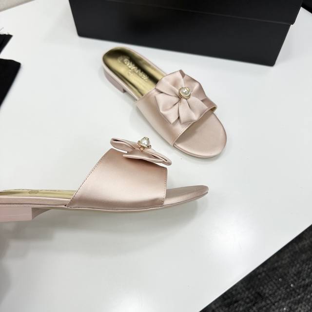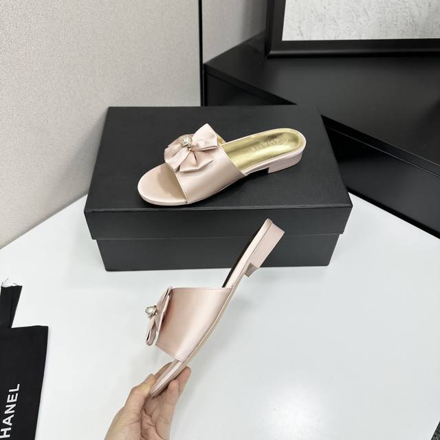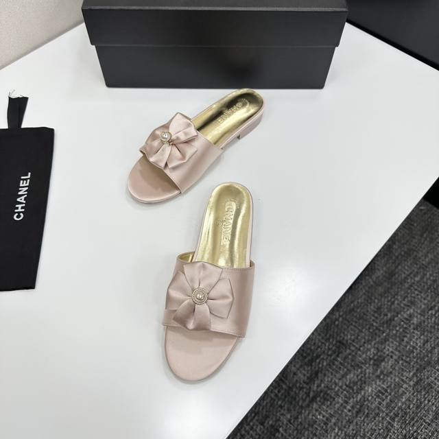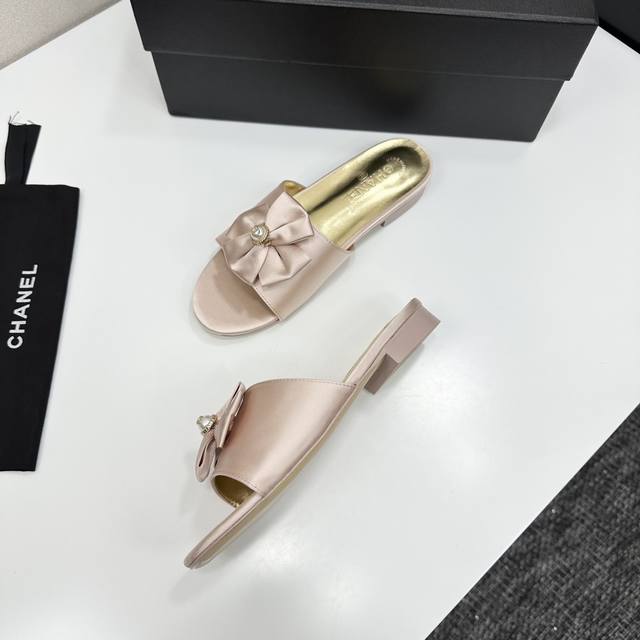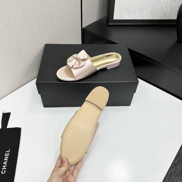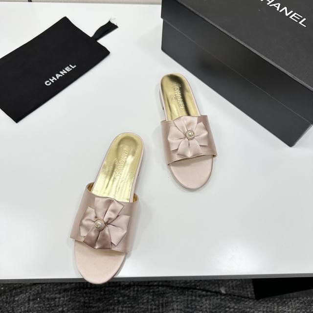 Chanel 小香 25Ss 春夏新品双C链条牛平底一字拖鞋 小香的一款全新设计 鞋面毛线纯手工编织搭配双C五金装饰...