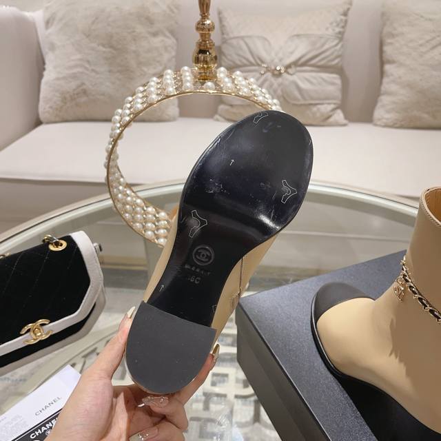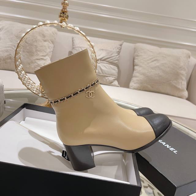 2025小香Chanel 高品质专柜级- Chanelaa 小香新款链条瘦腿短靴 顶级代购级别稀品上新 T 鞋面:意大利进口小牛皮香奈儿独有的链条元素 内里:进口舒适柔软羊皮内里垫脚 大底:意大利进口真皮大底独家开模 颜色:黑色 白色 杏色 码数:34到40 34、41、42定做不退不换 包装:专柜鞋业最新全套包装 出厂价Pp: