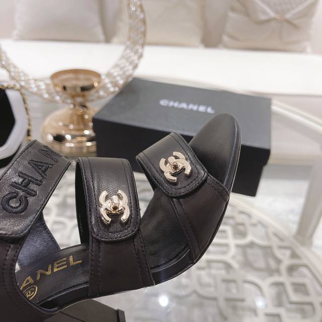Logo滴胶 25Fw新款Chanel小香最新滴胶后空Sling-Back凉鞋平底 粗跟 sling-Back于1957年问世,之后Two-Tone设计成为Ch