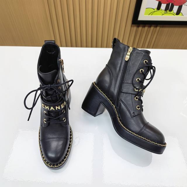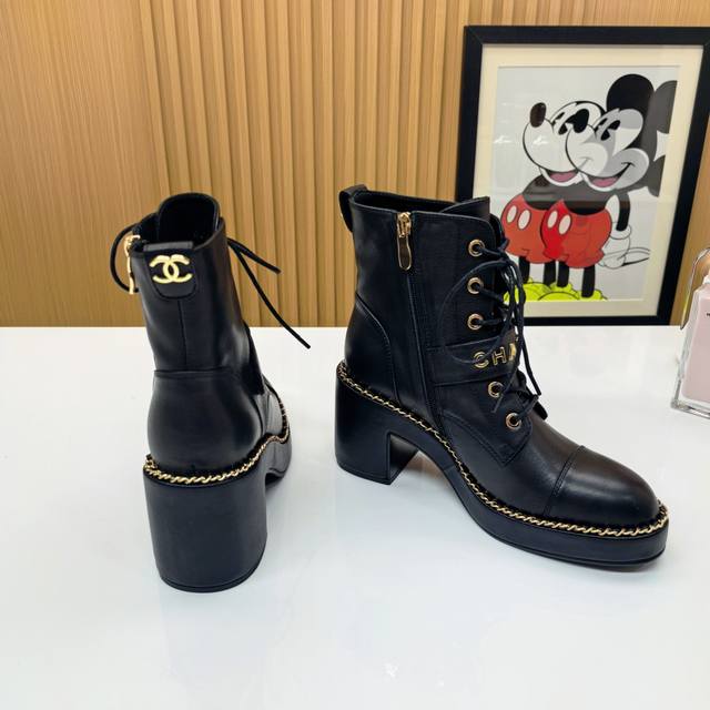 2025最新香奈儿重工绑带高跟短靴 通勤约会全能王 Chanei短靴把 高级感 焊在脚上 一针一线皆工艺 一颦一步皆风情 Chanei秋冬新款短靴来袭 用意大利