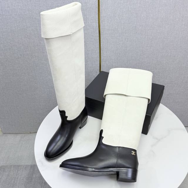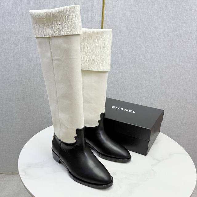 小红书力推款,时髦精必备,香奈儿女士钟爱简约又难以抗拒系,金色五金扣,搭配展现与众不同的穿搭风格、原版开模发泡大底,面料采用意大利进口小牛皮,内里水染羊皮,码数35-40, 定做40.41.不退换 22寸高靴,