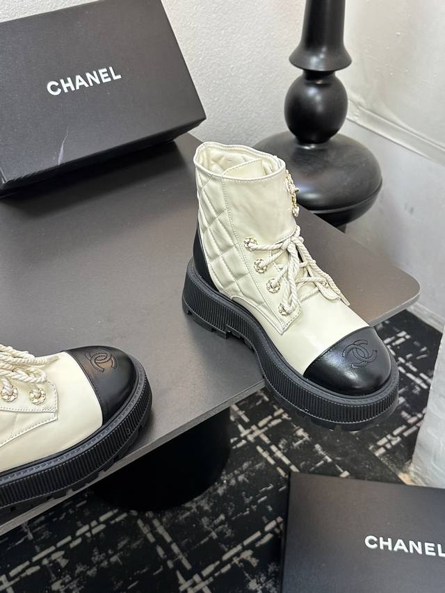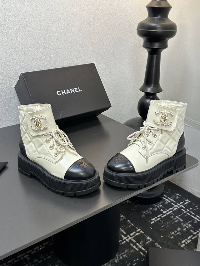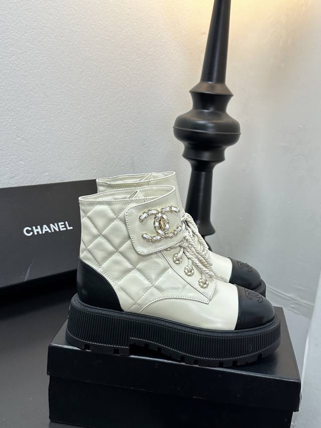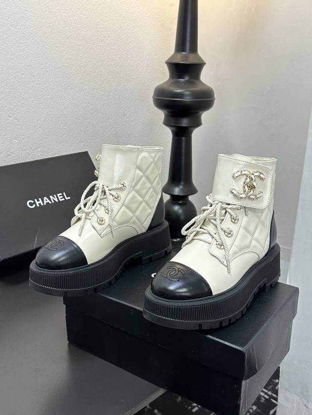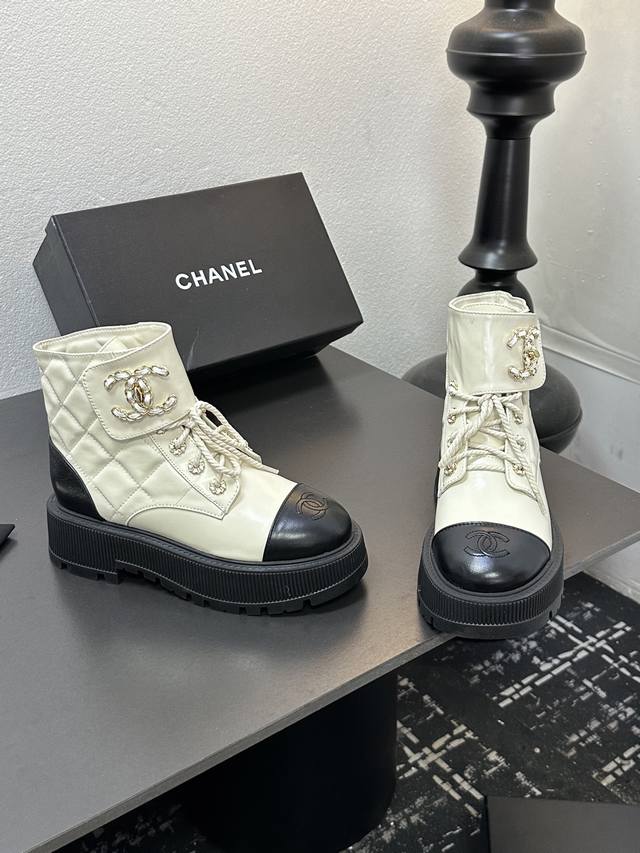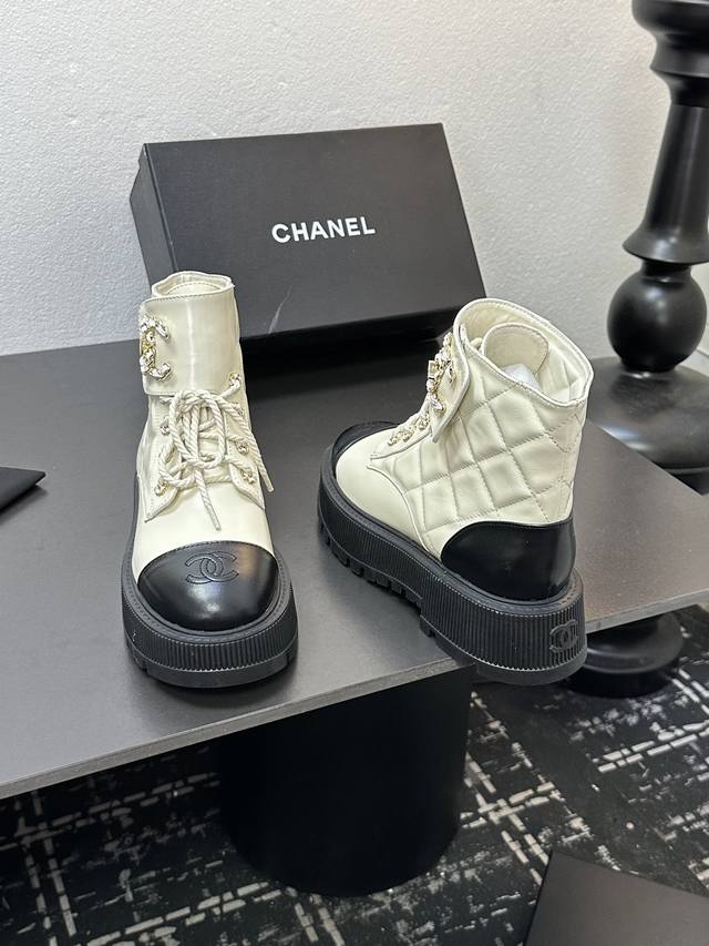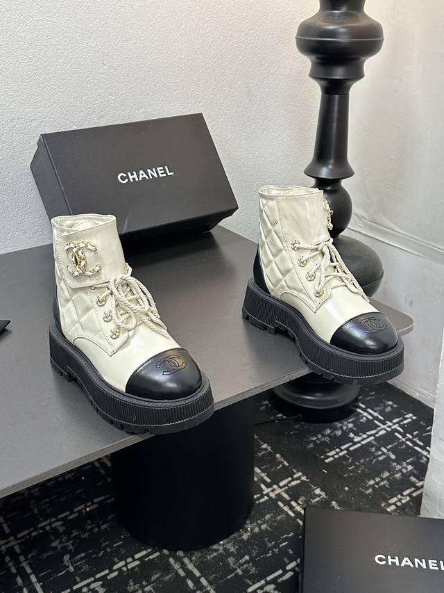 2025香奈尔秋冬新款,顶级走秀款独家订制 高版本 靴筒双C皮扣,面料:油腊皮材料; 内里:羊皮;成型大底,底厚6厘米,黑 白 两色:配全套包装,码数35--4