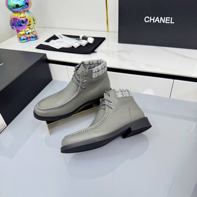 2025Chanel 香奈儿新款及裸靴短靴,绝了 经典的皮料搭配小香布艺拼色,自带高级感,上脚瞬间时髦度拉满~ 不同配色都好戳,搭裙子、裤子都能穿出独一份的香奶