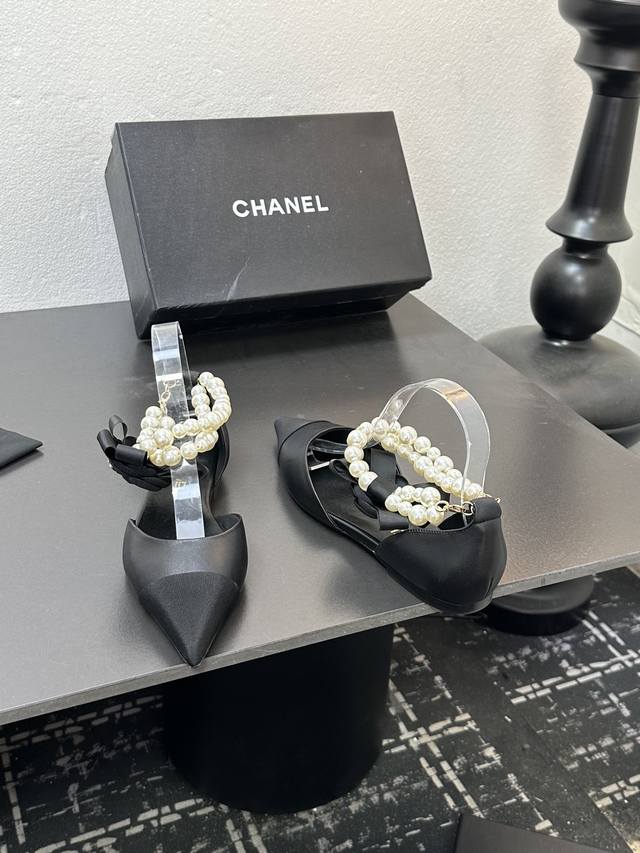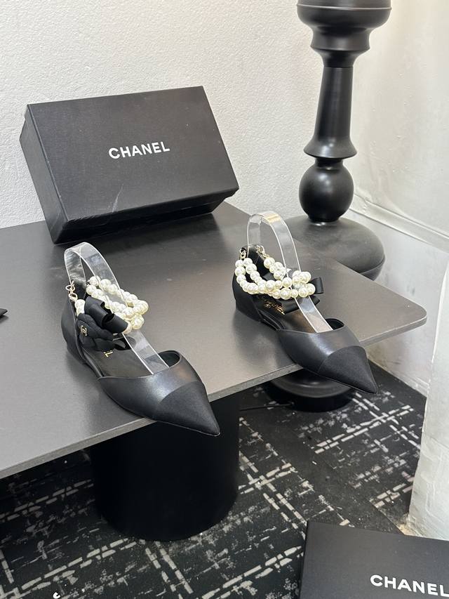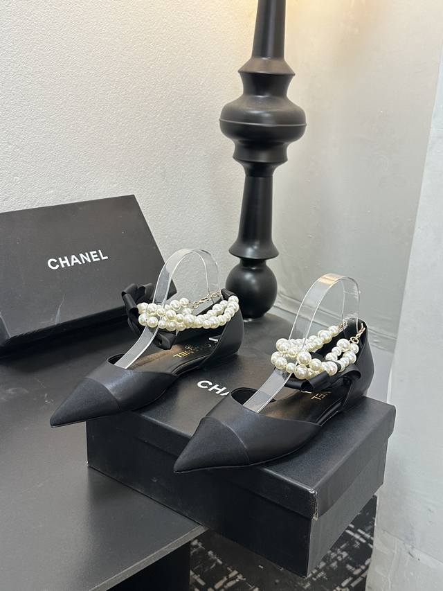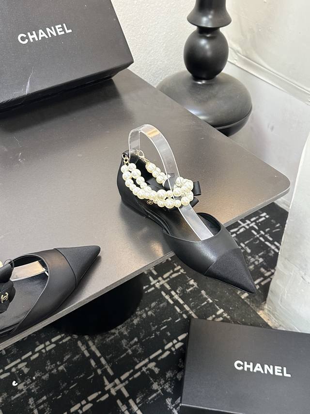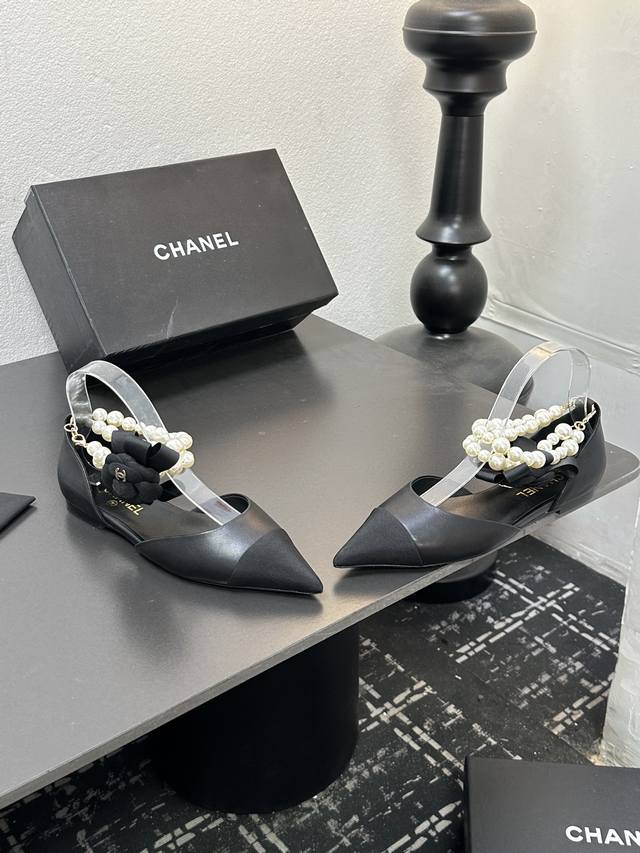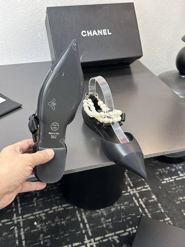 2026春夏新款 Chanel小香26C 尖头脚环大珍珠凉鞋双C扣山茶花平底玛丽珍经典双拼色中空单鞋 DDD 这款凉鞋以利落剪裁开启春夏序章,拼色设计碰撞出鲜活灵感,中空版型让肌肤与微风自在相拥,每一步都踩着轻盈韵律 。脚踝间的宽幅脚环是点睛之笔,硕大珍珠串饰随步履轻颤,延续着小香珍珠成为柔美元素的初心,打破华贵与日常的边界 让精致无需浮夸。 DDD 尖头设计巧妙延伸腿部线条 视觉上拉长比例 DDD 轻松打造“大长腿”既视感! DDD 鞋面:小羊皮 DDD 内里垫脚:羊皮 DDD 鞋底:意大利真皮大底 D