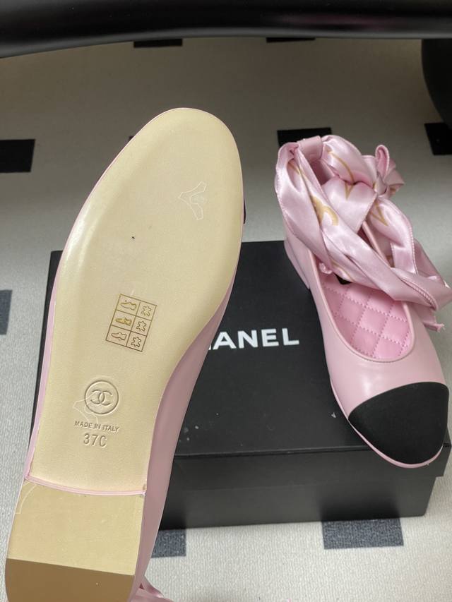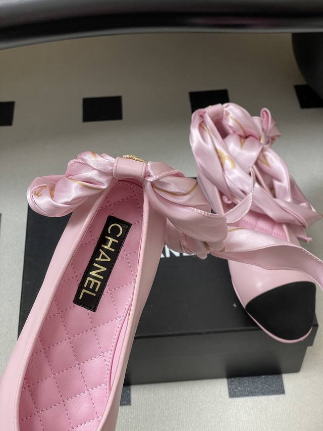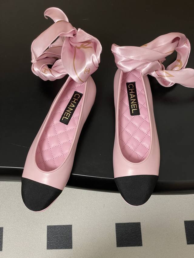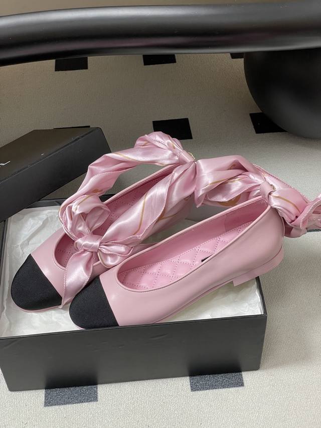 2026春夏新款Chanel小香 26C丝巾系列拼色蝴蝶结双C丝带 绑带脚踝芭蕾舞鞋平底玛丽珍鞋单鞋 DDD 藏着少女感与优雅感的双重惊艳,以丝带设计打破经典边界,双元素点缀其间 低调又奢华。丝缎质感丝带柔滑贴肤,绑带设计延续复古基因,圆头适配各类脚型 显瘦不夹脚,融合品牌经典标识与春日柔和调性,轻松解锁复古法式慵懒等多元风格,从通勤西装到约会裙装,皆能揉合复古浪漫与法式贵气,每一步都自带慵懒精致气场。 DDD 鞋面:小羊皮 DDD 内里垫脚:羊皮 DDD 鞋底:意大利真皮大底 DDD 码数:35-39