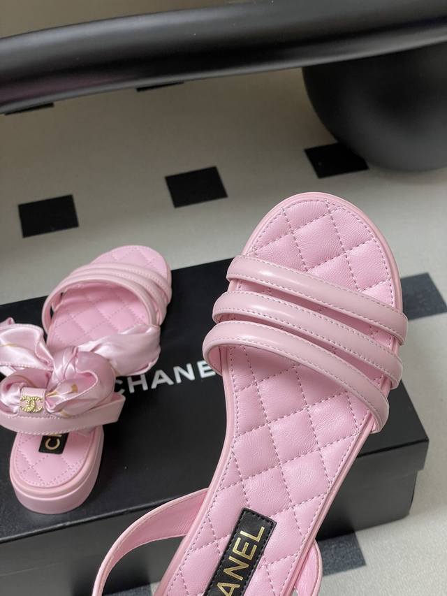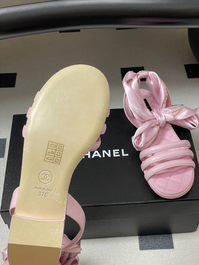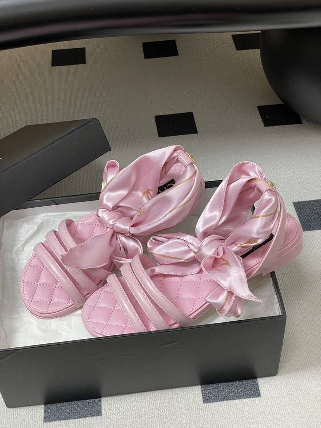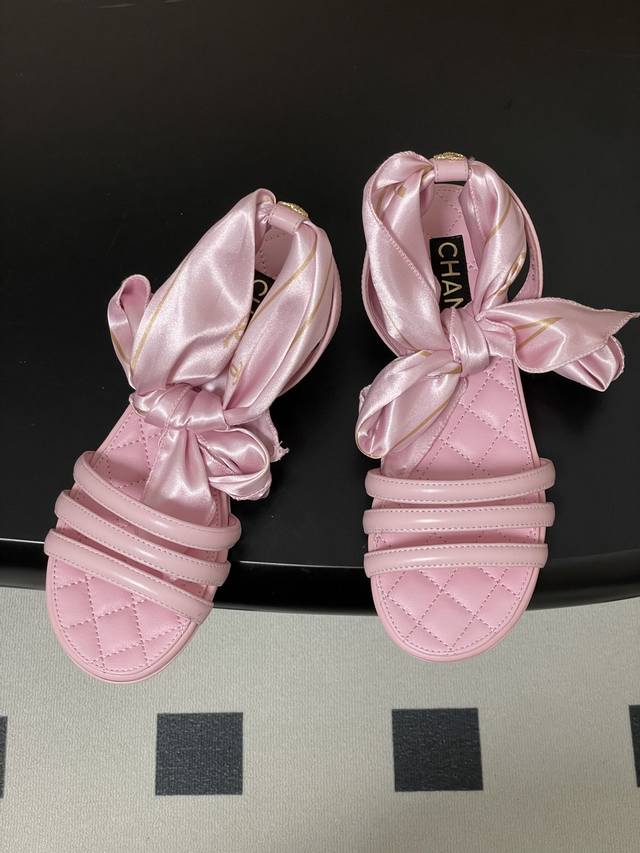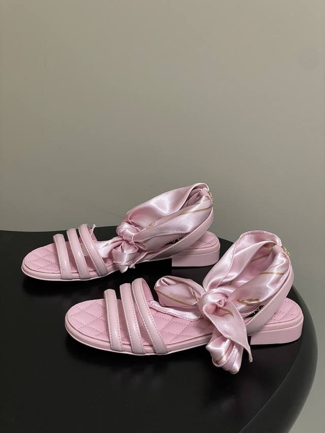 2026春夏新款Chanel小香26C 经典双C扣菱格蜜儿一字平底凉鞋丝巾脚踝绑带细带高跟粗跟凉鞋 DDD 藏着少女感与优雅感的双重惊艳,以丝带设计打破经典边界,双C元素点缀其间 低调又奢华。丝缎质感丝带柔滑贴肤,绑带设计延续复古基因,光影流转间烙刻品牌辨识度,低调释放奢牌质感不张扬。平底款主打松弛随性 中跟款兼顾优雅与舒适 高跟款拔高气场格调!可甜可酷可优雅 太绝了! DDD 鞋面:羊皮 DDD 内里垫脚:羊皮 DDD 鞋底:意大利真皮大底 DDD 码数:35-39 40.41定做不退换 DDD