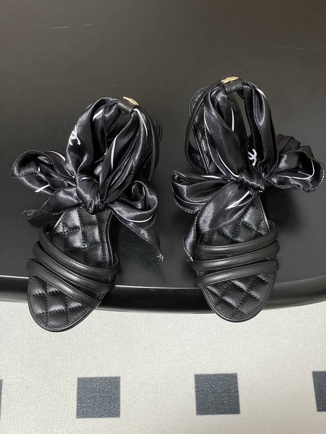 2026春夏新款Chanel小香26C 经典双C扣菱格蜜儿一字平底凉鞋丝巾脚踝绑带细带高跟粗跟凉鞋 DDD 藏着少女感与优雅感的双重惊艳,以丝带设计打破经典边界,双C元素点缀其间 低调又奢华。丝缎质感丝带柔滑贴肤,绑带设计延续复古基因,光影流转间烙刻品牌辨识度,低调释放奢牌质感不张扬。平底款主打松弛随性 中跟款兼顾优雅与舒适 高跟款拔高气场格调!可甜可酷可优雅 太绝了! DDD 鞋面:羊皮 DDD 内里垫脚:羊皮 DDD 鞋底:意大利真皮大底 DDD 码数:35-39 40.41定做不退换 DDD