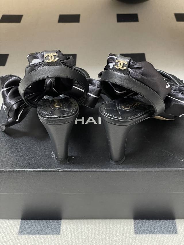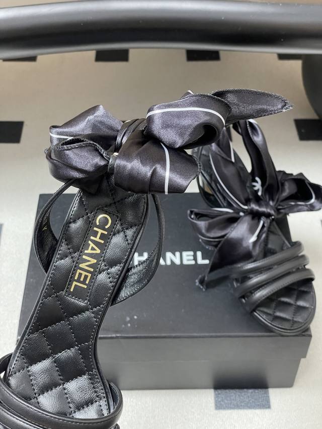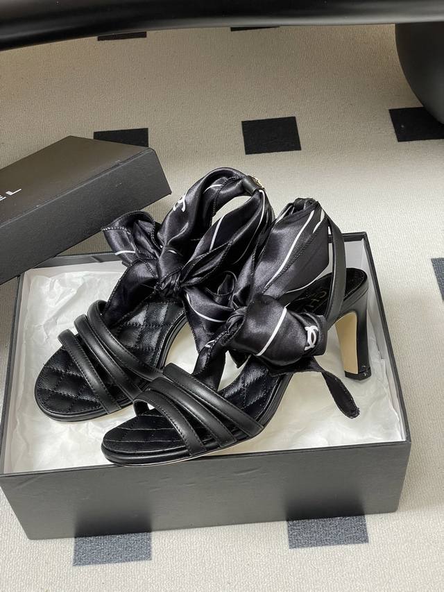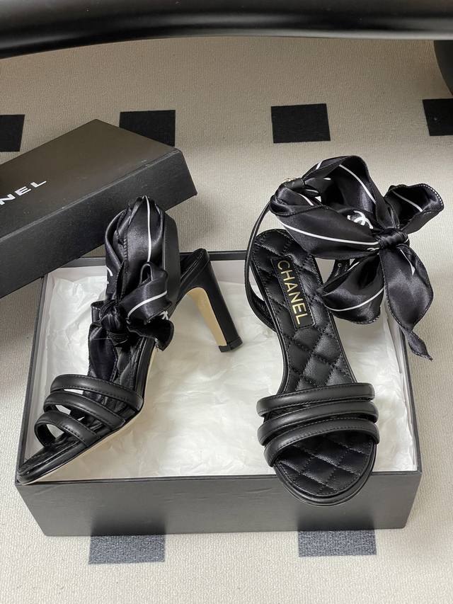 2026春夏新款Chanel小香26C 经典双C扣菱格蜜儿一字平底凉鞋丝巾脚踝绑带细带高跟粗跟凉鞋 藏着少女感与优雅感的双重惊艳,以丝带设计打破经典边界,双C元