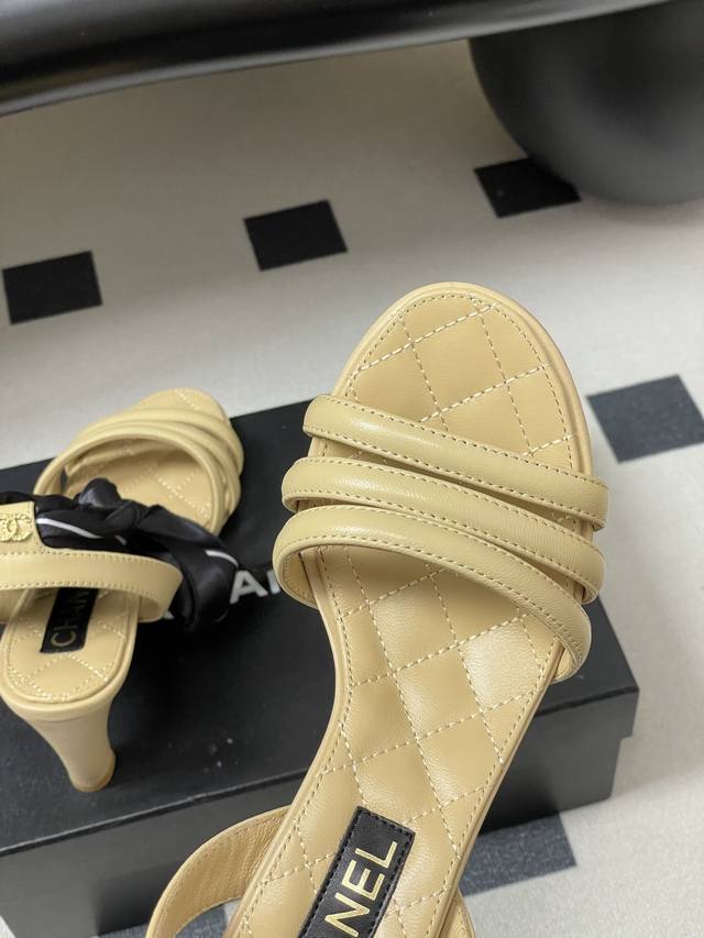 2026春夏新款Chanel小香26C 经典双C扣菱格蜜儿一字平底凉鞋丝巾脚踝绑带细带高跟粗跟凉鞋 DDD 藏着少女感与优雅感的双重惊艳,以丝带设计打破经典边界,双C元素点缀其间 低调又奢华。丝缎质感丝带柔滑贴肤,绑带设计延续复古基因,光影流转间烙刻品牌辨识度,低调释放奢牌质感不张扬。平底款主打松弛随性 中跟款兼顾优雅与舒适 高跟款拔高气场格调!可甜可酷可优雅 太绝了! DDD 鞋面:羊皮 DDD 内里垫脚:羊皮 DDD 鞋底:意大利真皮大底 DDD 码数:35-39 40.41定做不退换 DDD