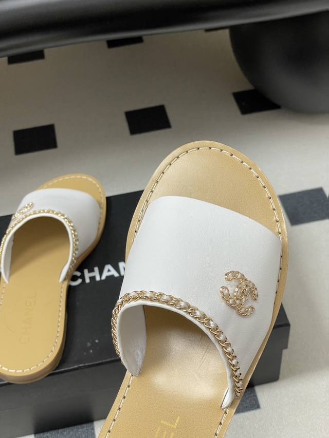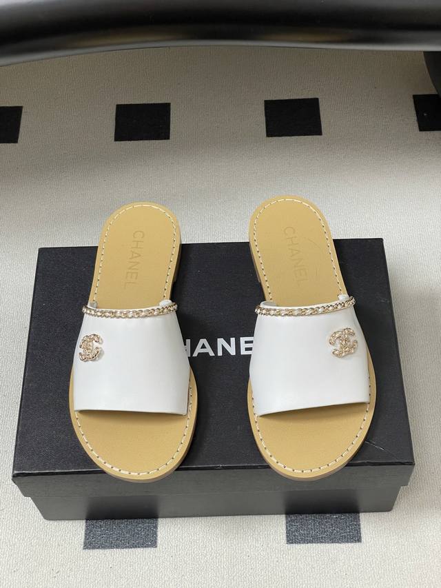 2026春夏新款Chanel 小香26C 经典双C扣链条一字带平底凉拖鞋 DDD 穿不腻的百搭凉拖 超经典的一款 休闲中带着精致 气质拿捏稳妥 今年春夏绝美加分宝藏! DDD 链条凉鞋今年的大爆款,已被它的美貌折服得随性自然 ,又有香家经典的霸道,从皮质到五金满满的高级感 ,上脚舒适又洋气! DDD 鞋面:羊皮 DDD 内里:羊皮 DDD 鞋底:意大利真皮大底 DDD 码数:35-39 40.41定做不退换 DDD