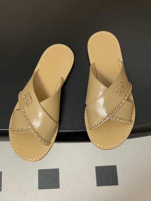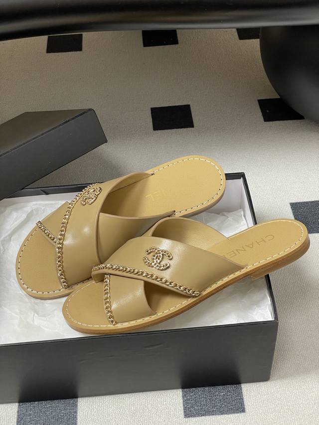 2026春夏新款Chanel 小香26C 经典双C扣链条交叉带平底凉拖鞋 穿不腻的百搭凉拖 超经典的一款 休闲中带着精致 气质拿捏稳妥 今年春夏绝美加分宝藏!