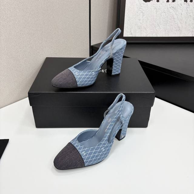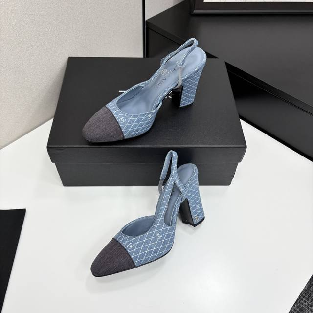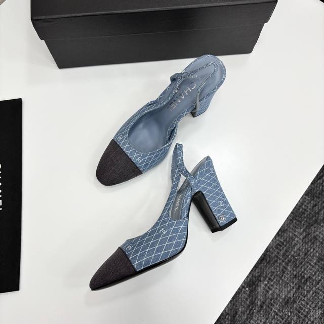 香奈儿最新,星空点,系列,出厂价p .粗跟方头拼色百搭高跟后空女凉鞋...