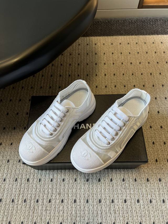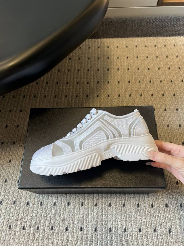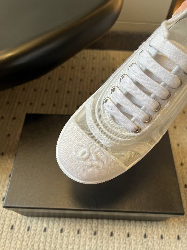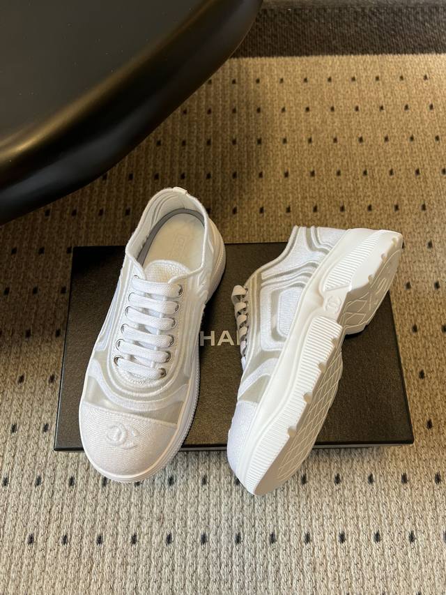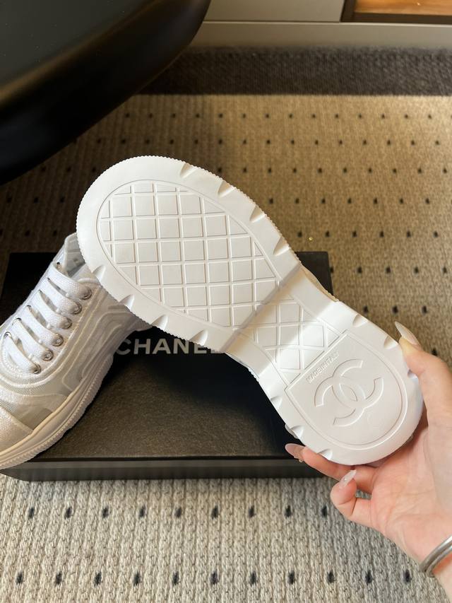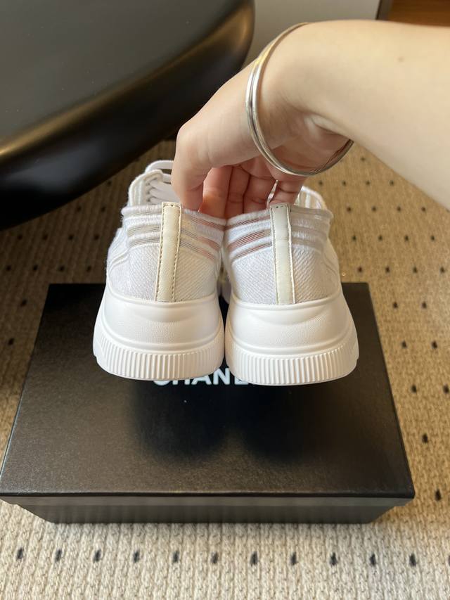 Chane*厚底透气拼色帆布运动鞋 DDD 鞋头处嵌有香奈儿经典的双C刺绣Logo,辨识度极高;采用简约的系带款式,搭配圆头廓形,兼具休闲感与品牌经典美学;纯白、黑白拼色等配色,风格百搭且契合品牌简约奢华的调性。 DDD 鞋面与大底通过手工缝线连接,走线平顺整齐,细节处理考究。鞋垫做加厚处理,不仅提升舒适度,还能起到轻微增高的效果。 DDD 鞋面:布面 网 Ddd 内里:羊皮 Ddd 大底:原版开模大底 Ddd 增高:4Cm Ddd Size:35-40码 40码定制不退换 DDD