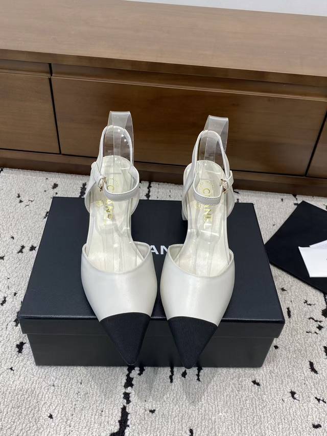 / Chane*|小香中古25C春秋 新品拼接尖头方跟后空单鞋 低调优雅 时髦的小尖头 非常修饰脚型 百搭款式 方跟走路友好! 鞋面采用原版羊皮 内里垫脚均为羊皮
