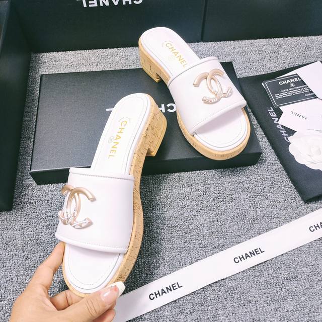 / Chane*|小香春夏新品 粗跟链条字母拖鞋 香奶奶家一贯的优雅名媛气质 高级感十足!上脚非常Nice~ 不管光脚穿或搭配裙装、裤装、 都非常百搭!无敌美!特别