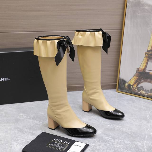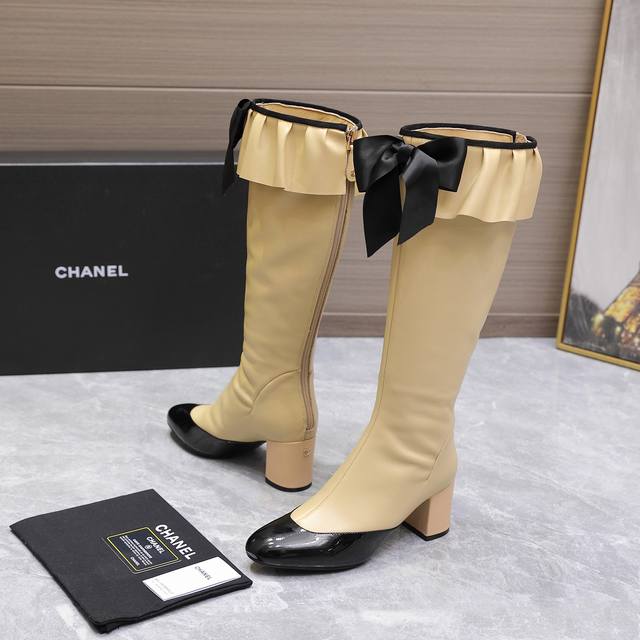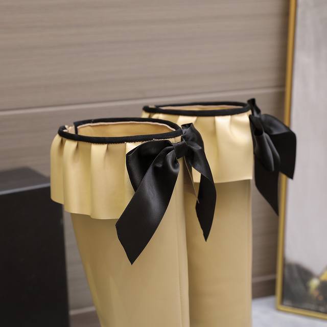 Chane*|小香25A秋冬新品蝴蝶结弹力靴 当经典香家美学与潮流鞋履设计碰撞 这双褶皱靴口蝴蝶结弹力靴应运而生 瞬间成为时尚精们的梦中情靴。 靴面正中标志性的精美蝴蝶结点缀其上 绸缎材质的蝴蝶结灵动优雅 搭配小巧金属扣饰 在阳光下闪耀着精致光芒 将品牌的优雅浪漫诠释得淋漓尽致 每一次抬脚都是目光焦点。 褶皱靴口是这双靴子的神来之笔 层层叠叠的褶皱宛如海浪轻涌 充满立体感 不经意间就为整体造型增添了几分浪漫与随性。 独特的弹力靴筒设计 不仅贴合脚踝线条 凸显出腿部的纤细修长 也极致舒适体验 轻松应对日常行