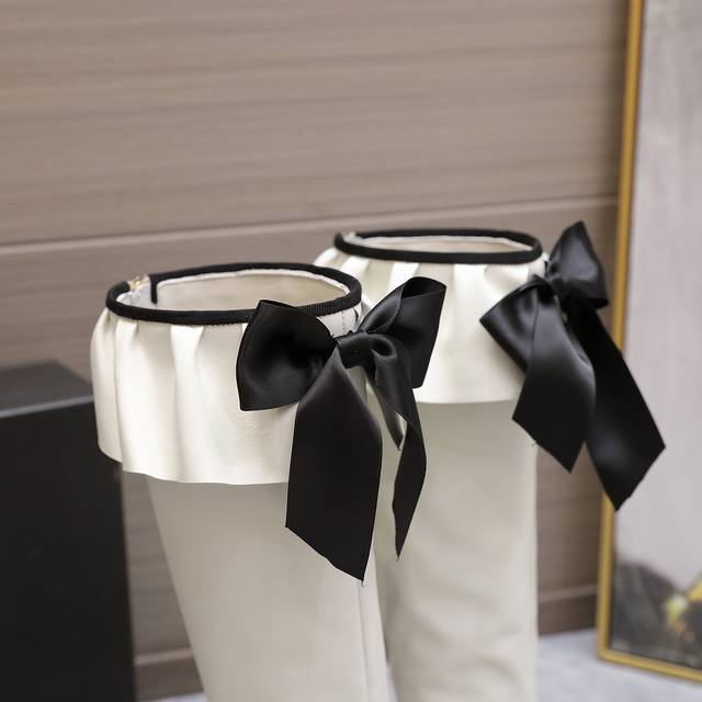 Chane*|小香25A秋冬新品蝴蝶结弹力靴 当经典香家美学与潮流鞋履设计碰撞 这双褶皱靴口蝴蝶结弹力靴应运而生 瞬间成为时尚精们的梦中情靴。 靴面正中标志性的精美蝴蝶结点缀其上 绸缎材质的蝴蝶结灵动优雅 搭配小巧金属扣饰 在阳光下闪耀着精致光芒 将品牌的优雅浪漫诠释得淋漓尽致 每一次抬脚都是目光焦点。 褶皱靴口是这双靴子的神来之笔 层层叠叠的褶皱宛如海浪轻涌 充满立体感 不经意间就为整体造型增添了几分浪漫与随性。 独特的弹力靴筒设计 不仅贴合脚踝线条 凸显出腿部的纤细修长 也极致舒适体验 轻松应对日常行