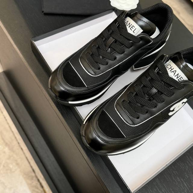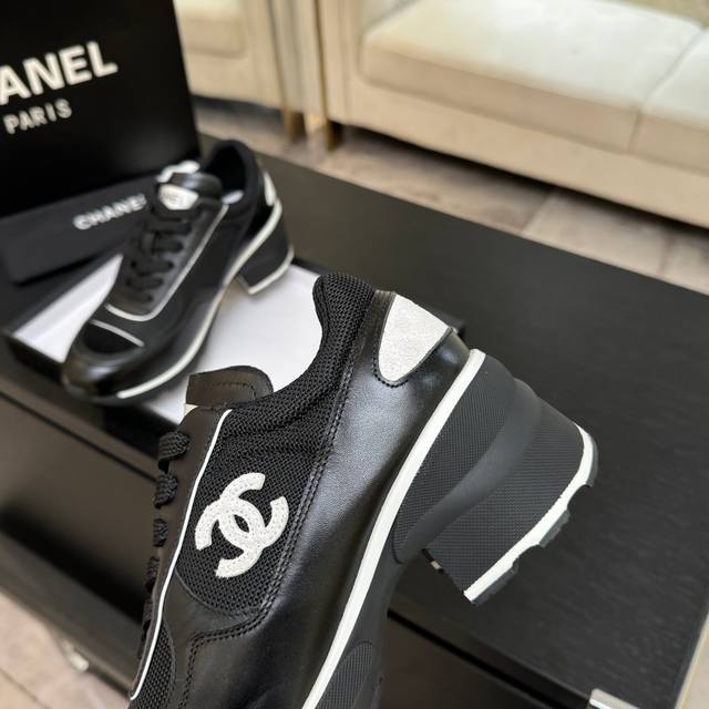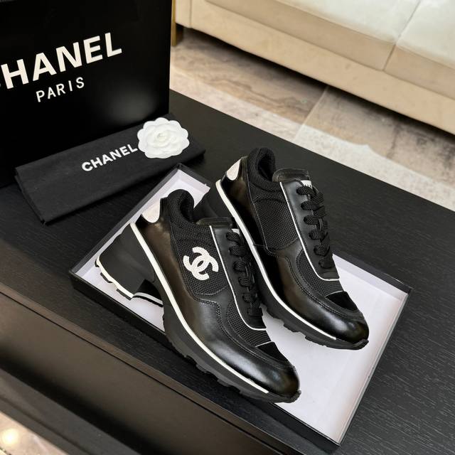 Chane*|小香25K双C熊猫粗跟 DDD 高跟运动鞋老爹鞋 DDD 当小香创新语言碰撞老爹鞋的复古浪潮 DDD 这双运动鞋以标志性符号与矛盾美学 DDD 打破奢华与街头的风格边界 DDD 成为行走的时尚宣言。 DDD 便在经典基因与当代潮流的碰撞中 DDD 定格独树一帜的穿搭态度。 DDD 鞋面以黑白 熊猫 经典配色为基底 DDD 如墨色与奶白的精准碰撞 DDD 耐看且适配全衣橱穿搭。 DDD 甄选原版进口牛皮与透气网布拼接 DDD 羊毛的天然恒温特性 让温暖与透气兼得 DDD 鞋侧立镶嵌的双C徽标堪