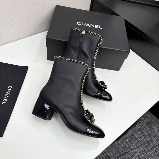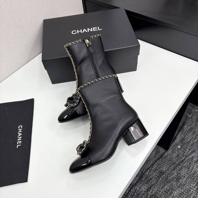 Chane*|小香25P链条蝴蝶结粗跟短靴 本季王炸神款香家经典蝴蝶结链条元素,时髦感十足的单品!造型立体饱满,帅气十足!谁穿谁爱上!真的值得入手! 面料采用进口小牛皮 内里垫脚均为羊皮 意大利进口牛皮大底 Size:35-39 40 41定制