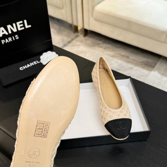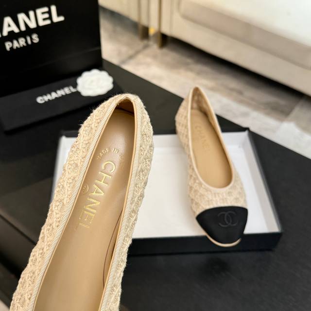 Chane*|小香26C新品编织双C平底 Ddd 芭蕾舞鞋 Ddd 当高定针织工艺邂逅芭蕾鞋的经典廓形 Ddd 这双芭蕾舞鞋 为法式优雅注入轻盈诗意。 Ddd 精选细腻针织面料 以精密镂空纹理勾勒鞋身 Ddd 光线穿透时若隐若现 柔软透气 Ddd 又暗藏高定般的肌理质感 Ddd 行走间如芭蕾舞者般灵动自在。 Ddd 标志性双C Logo并非直白呈现 Ddd 而是以编织肌理巧妙融入鞋身 Ddd 简约却极具辨识度 彰显品牌基因 Ddd 搭配碎花裙演绎法式田园浪漫 Ddd 搭配牛仔裤解锁随性摩登 Ddd 搭配通