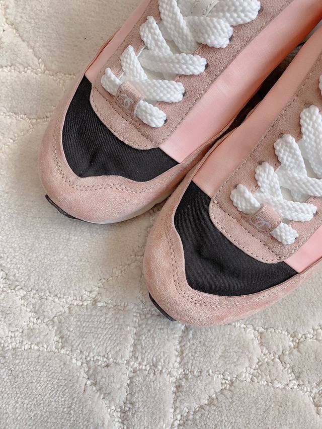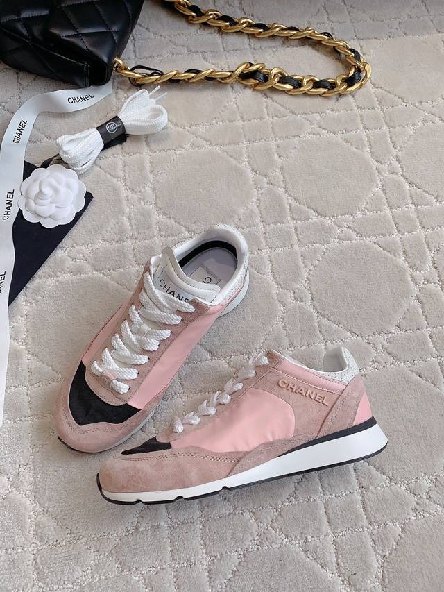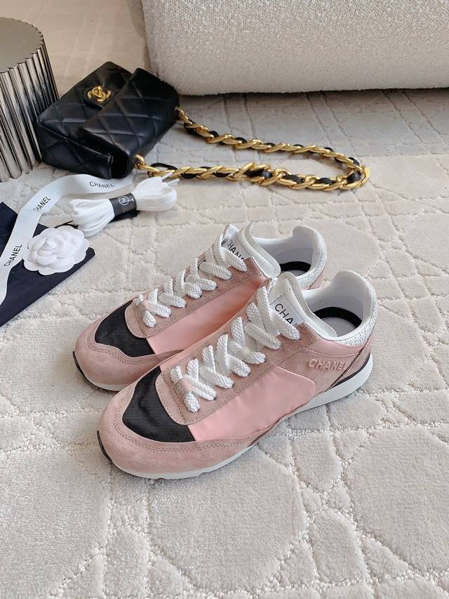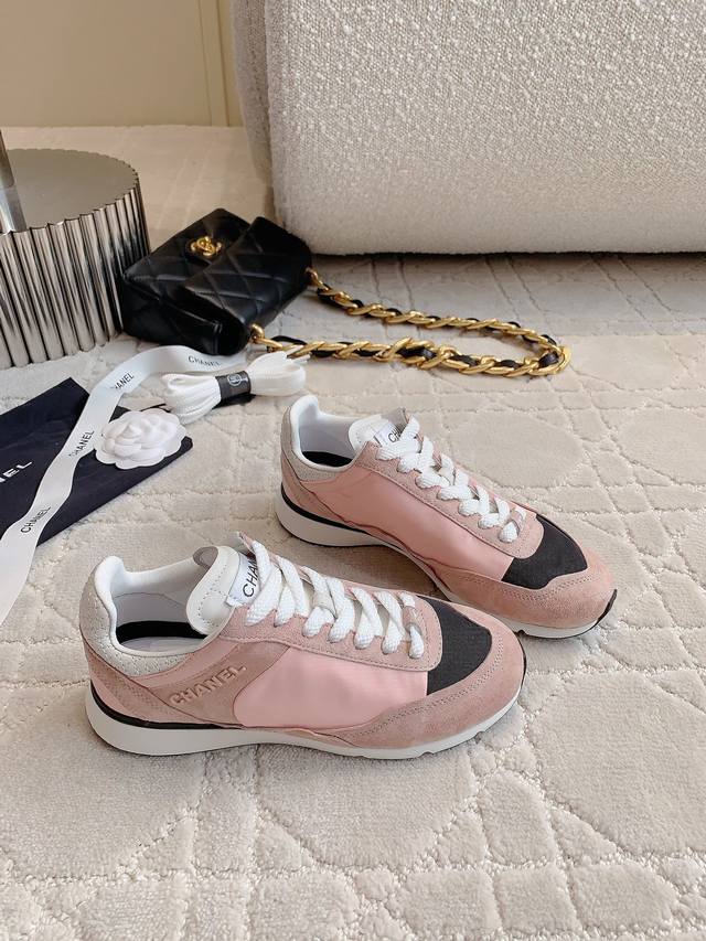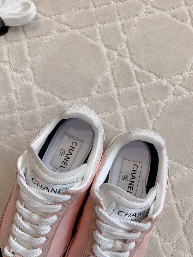 Chane*新款休闲鞋 简约轻便的设计很Chill好搭 经典配色超好看 日常穿搭轻松拿捏 鞋面牛反绒拼接布面 原版开模大底 尺码35-39 40 41 42定做