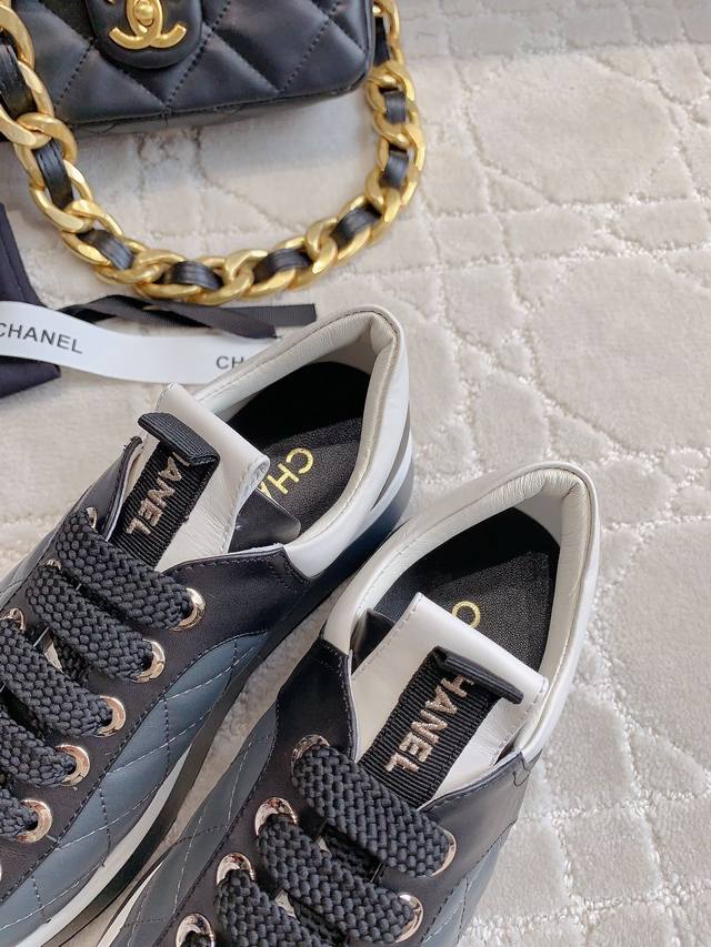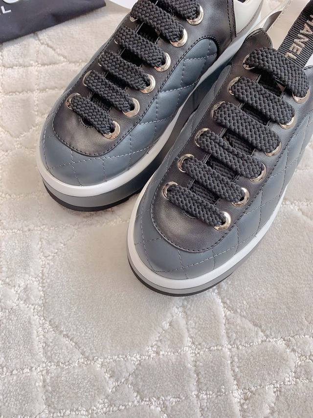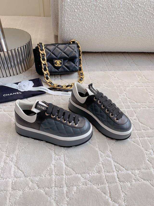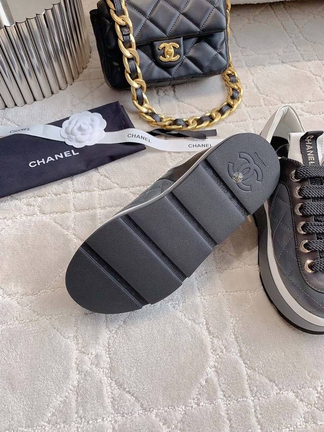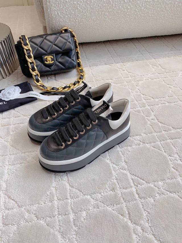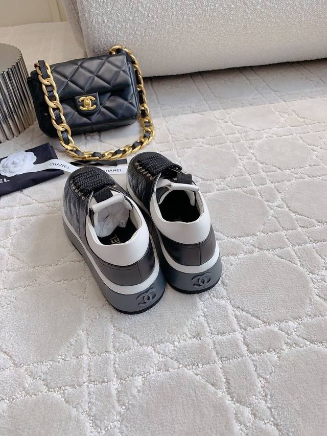 Chane*新款厚底休闲鞋 万能百搭款 厚底设计自带增高效果 小个子女生的福利 轻便超好穿 鞋面牛皮 内里垫脚羊皮 原版开模大底 尺码35-39 40 41定做