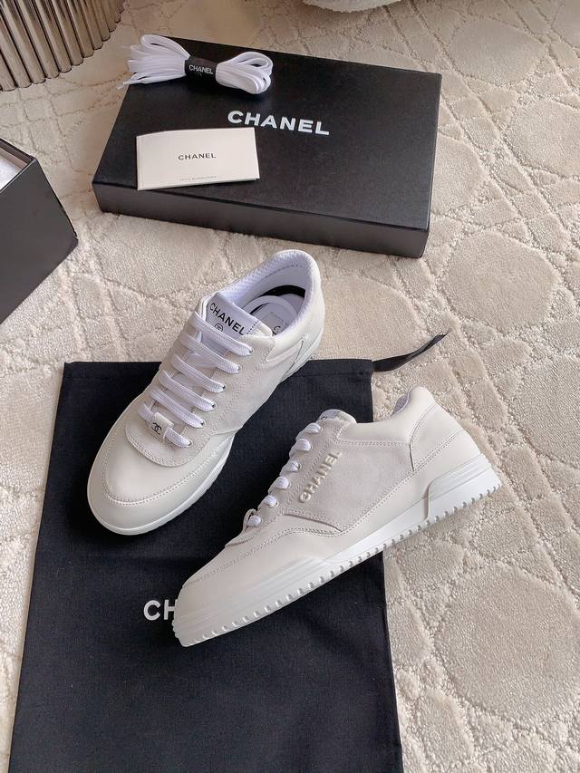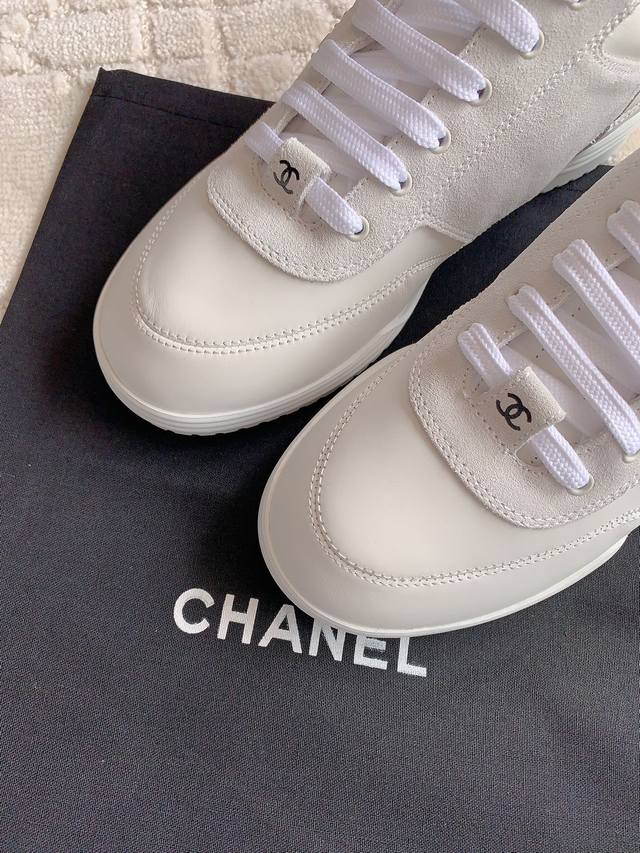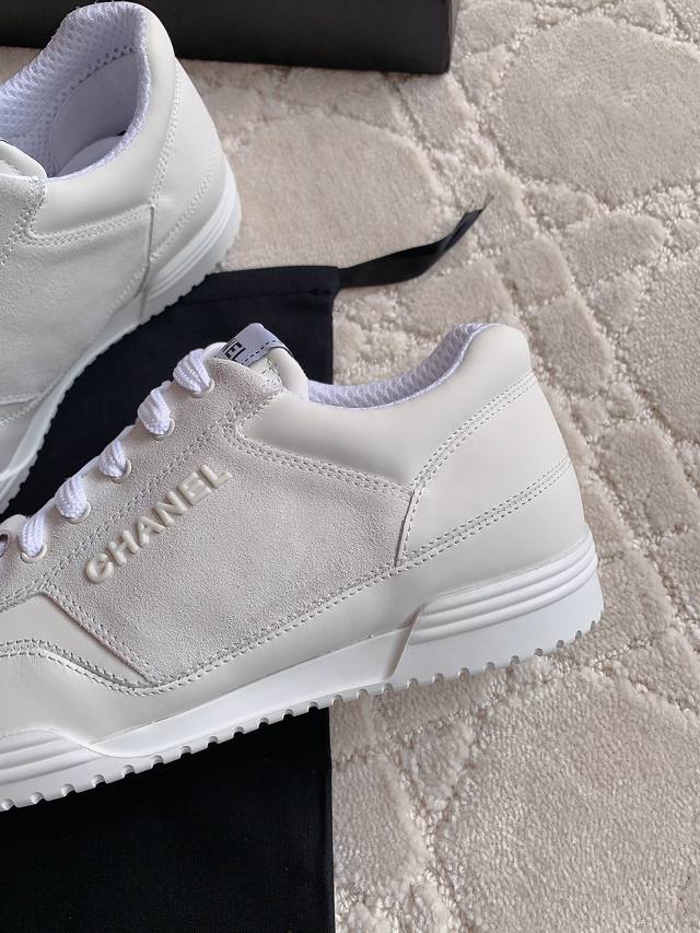 Chane*新款拼色小白鞋休闲板鞋 经典百搭款 鞋面牛皮拼接牛反绒 内里透气网面 舒适乳胶垫脚 原版开模大底 尺码35-39 40 41定做