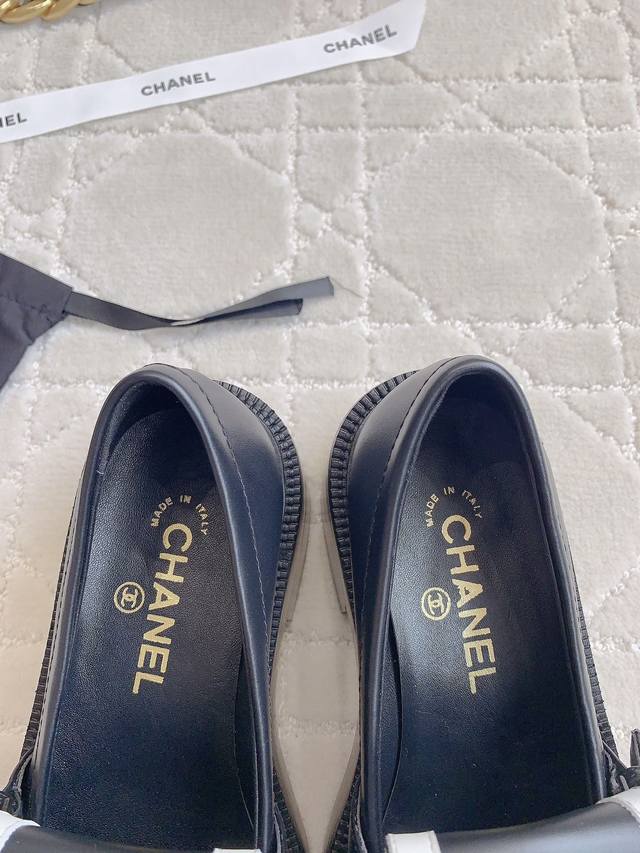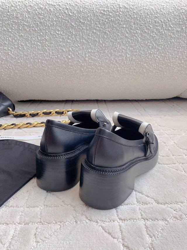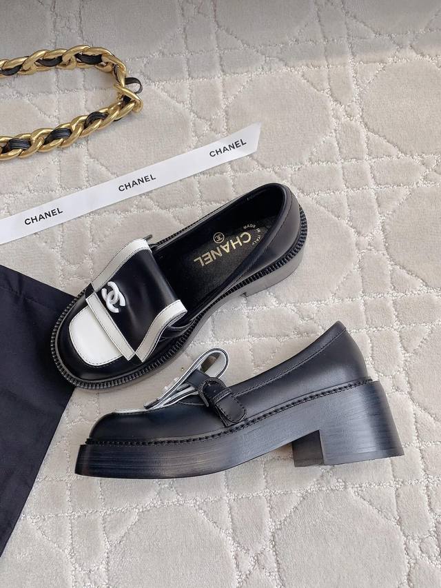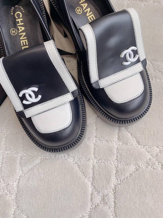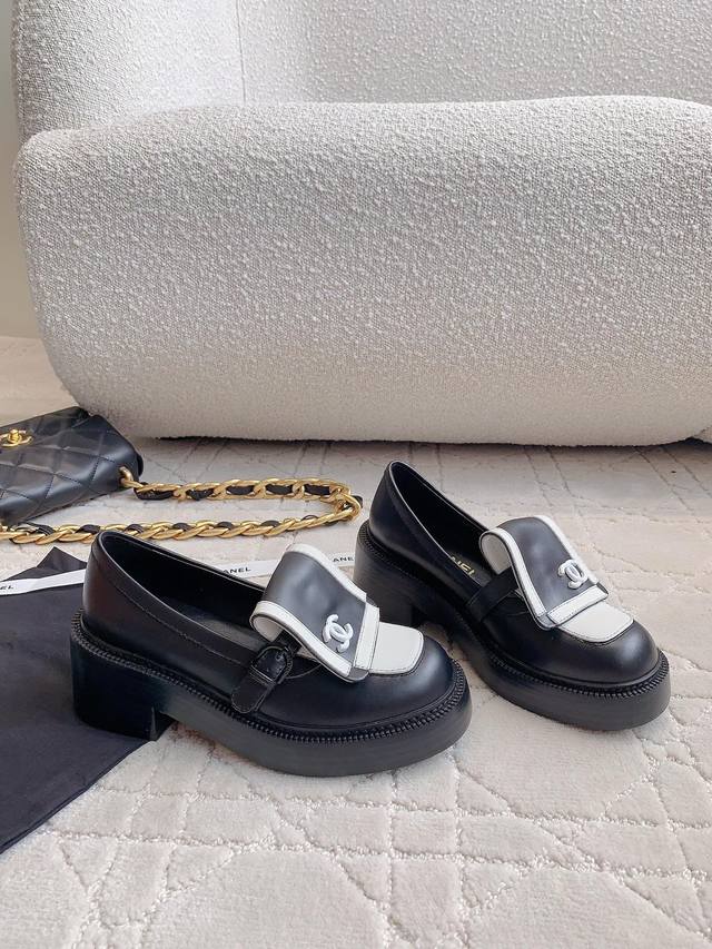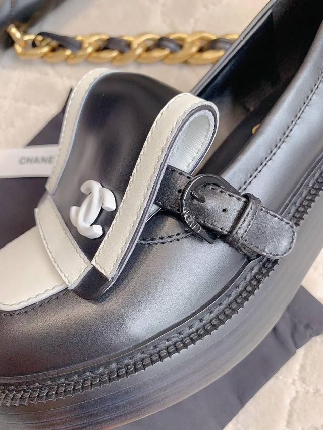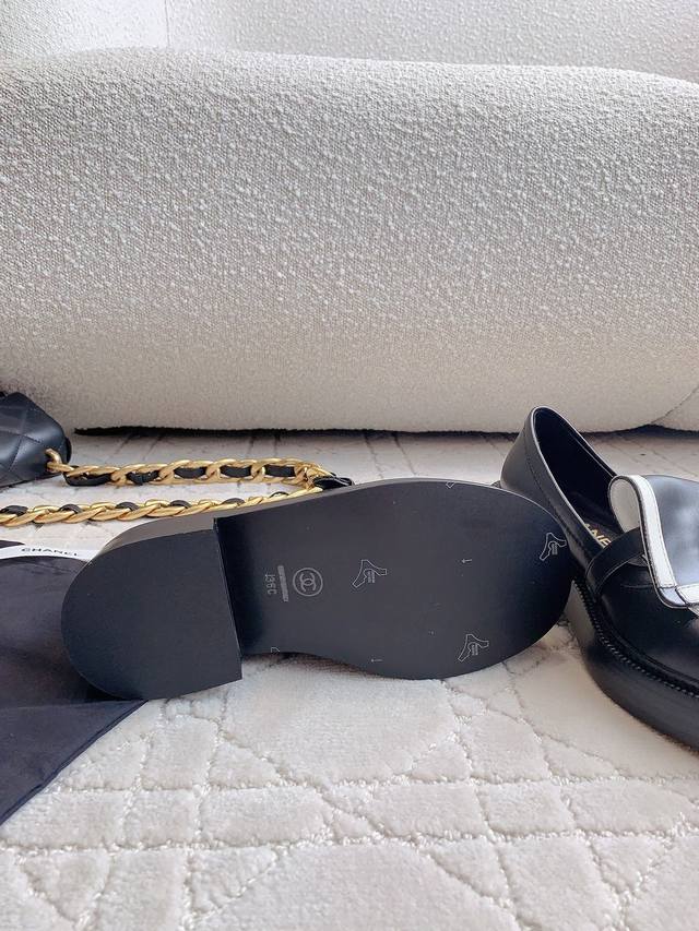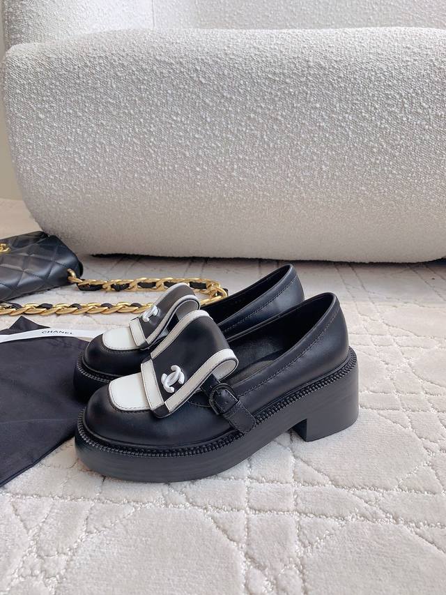 Chane*新款黑白熊猫厚底乐福鞋 上脚增高6Cm 时髦又百搭 一眼就相中的大头乐福鞋 鞋面牛皮 原版开模五金扣 内里垫脚羊皮 意大利真皮大底 尺码35-39