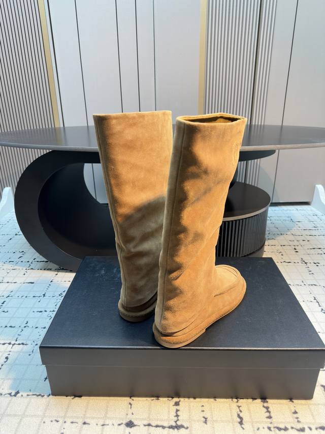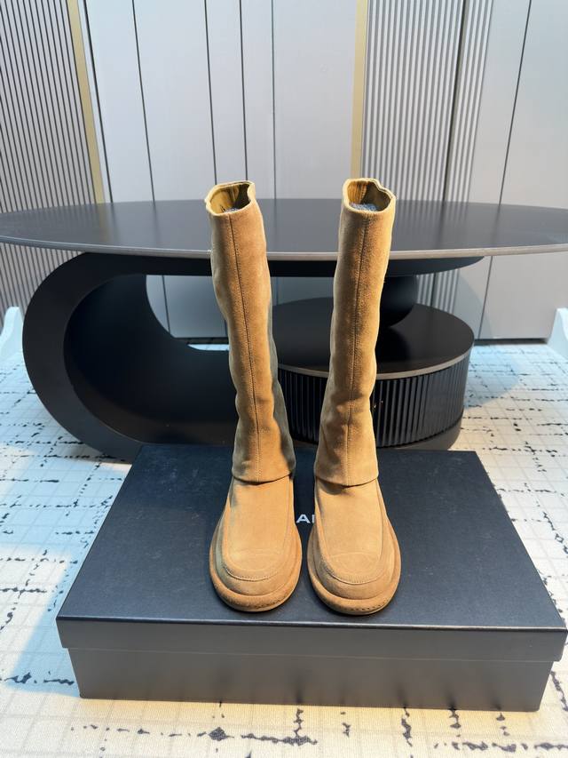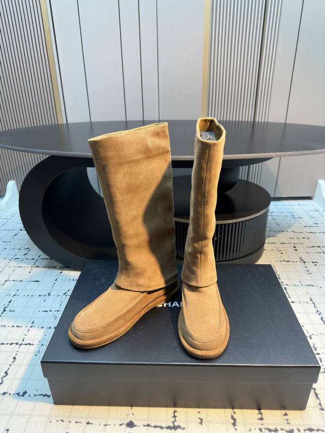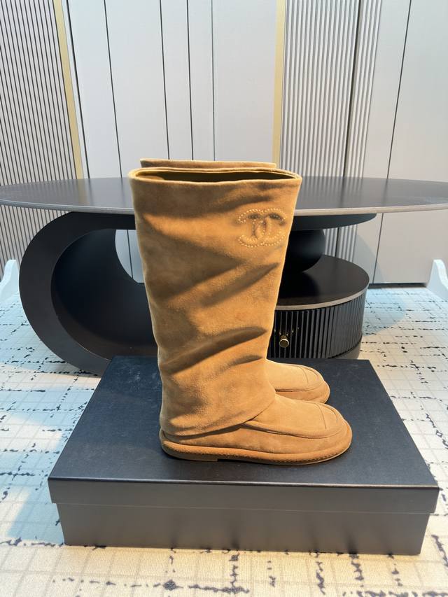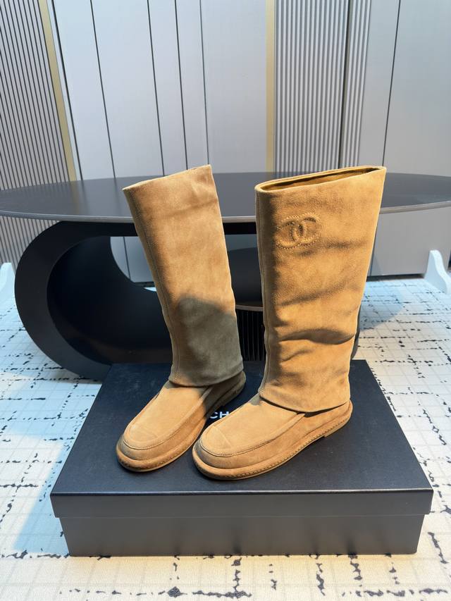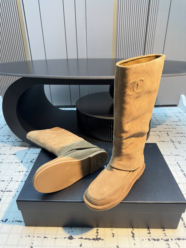 Chane* 小香秋冬气质长筒骑士靴 DDD 采用麂皮面料,触感柔软且自带复古哑光质感,提升高级感;鞋身侧面饰有香奈儿标志性的双C刺绣Logo,简约中彰显品牌辨识度;靴型为直筒宽松剪裁,适配多种腿型,且鞋头、鞋跟设计低调利落,弱化厚重感; DDD 尝试短裤+长袜的组合,露出部分靴筒,打造“下衣失踪”的潮流感;这类靴子凭借百搭的大地色系与复古麂皮材质,能轻松适配秋冬各类造型,从休闲到正式场合都能营造出独特的时尚氛围。 DDD 鞋面:牛反绒 DDD 内里:羊皮 DDD 大底:原版开模大底 DDD 码数:35