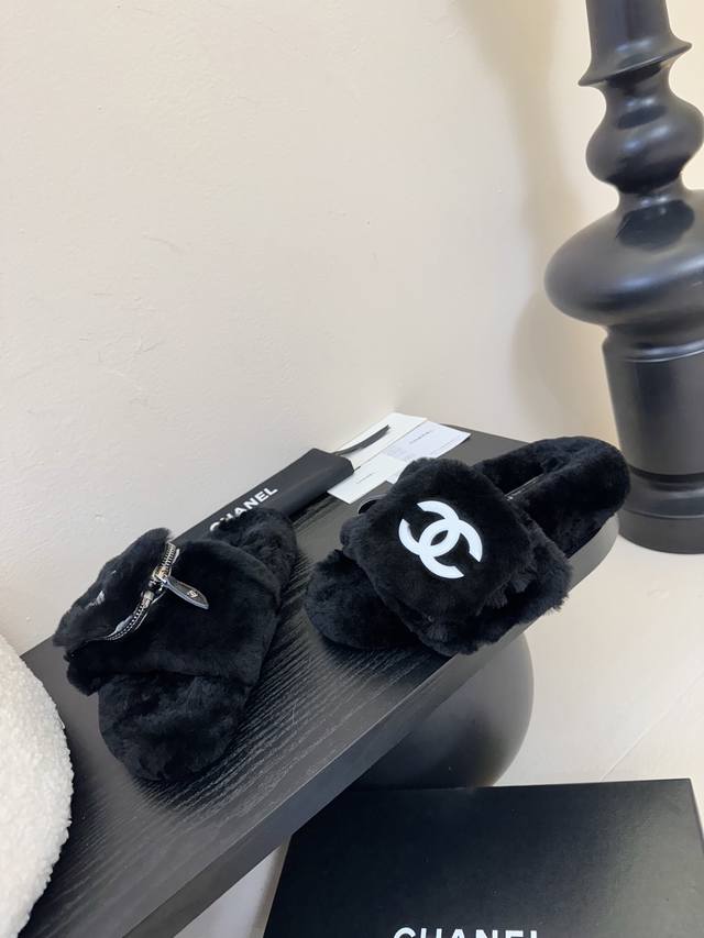 Chane* |小香经典四季双C毛毛拖鞋这款毛拖真的是真太可爱了~柔软蓬松的毛毛,舒服暖脚秋冬搭配袜子休闲又慵懒上脚真的好看又时髦进口澳洲真羊毛,手感细腻柔软丝