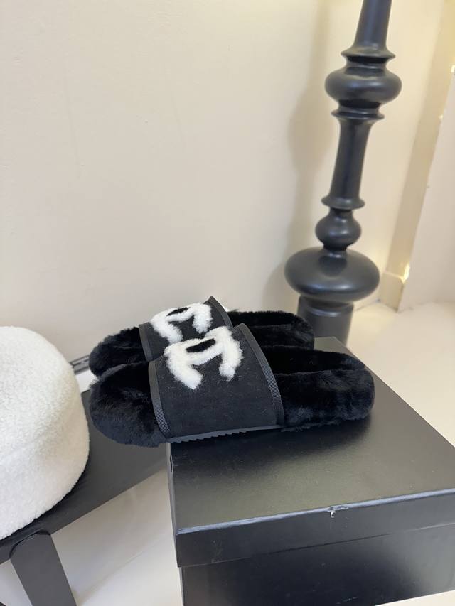 / Chane* |小香经典四季双C毛毛拖鞋 这款毛拖真的是真太可爱了~ 柔软蓬松的毛毛,舒服暖脚 秋冬搭配袜子休闲又慵懒 上脚真的好看又时髦 进口澳洲真羊毛,手感