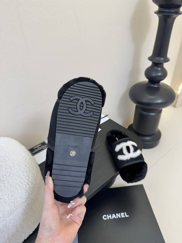 Chane* |小香经典四季双C毛毛拖鞋 这款毛拖真的是真太可爱了~ 柔软蓬松的毛毛,舒服暖脚 秋冬搭配袜子休闲又慵懒 上脚真的好看又时髦 进口澳洲真羊毛,手感细腻柔软丝滑 原版开模橡胶底 Size:35-39 40 41定制