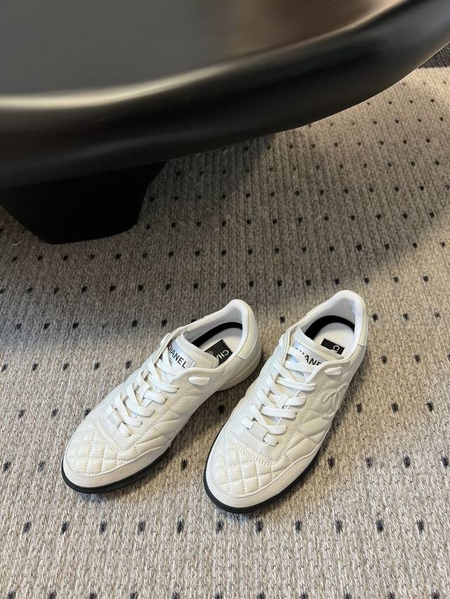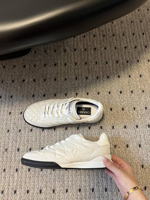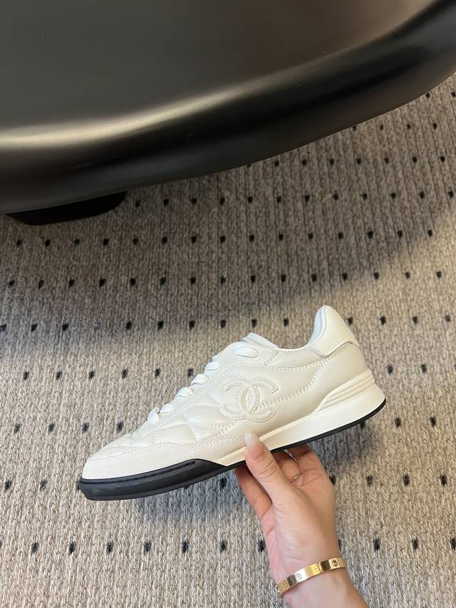 顶级版本: ::Chane* 25Ss 香奈儿低跟运动鞋 采用皮革与网面拼接的材质,兼具质感与透气性。鞋身带有品牌标志性的双C...
