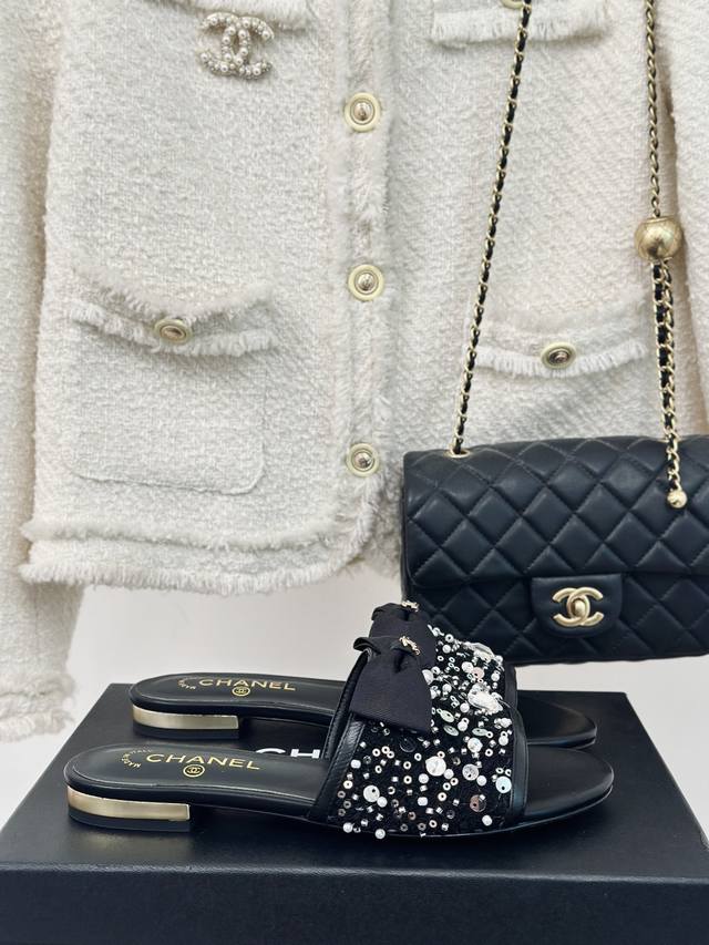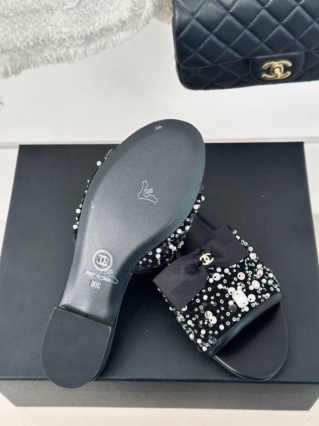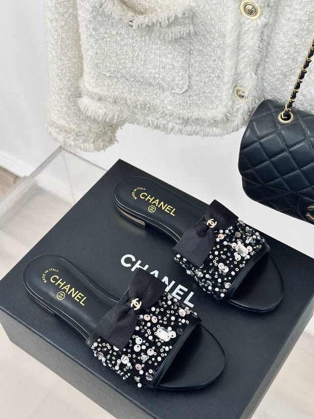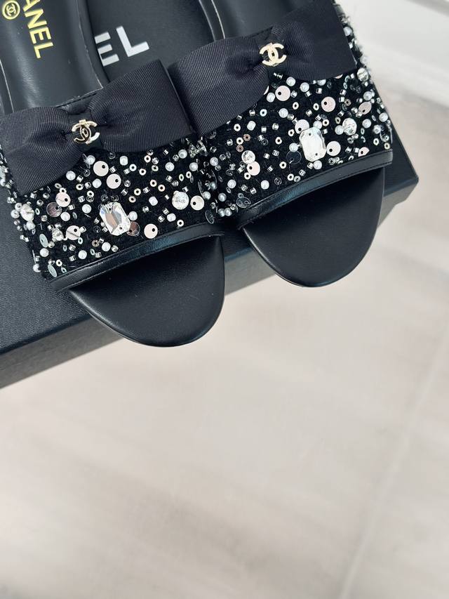 Chane* |小香24P新品蝴蝶 DDD 结水晶拖鞋 DDD Buling Buling 闪闪的又甜又御~ DDD 上脚真的是美到爆好吗! DDD 面料采用羊