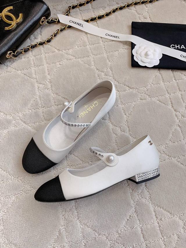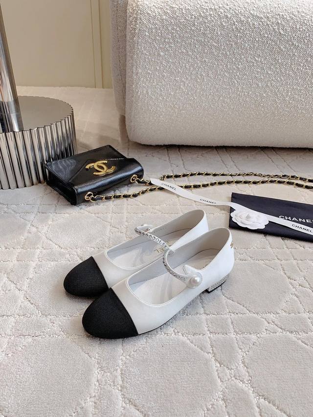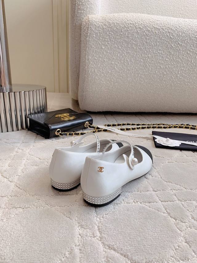 Chane* 新款平底玛丽珍单鞋 珍珠水钻点缀精致优雅 公主气质 万年百搭减龄款 上脚超级柔软舒适 任何穿搭都能轻松驾驭
