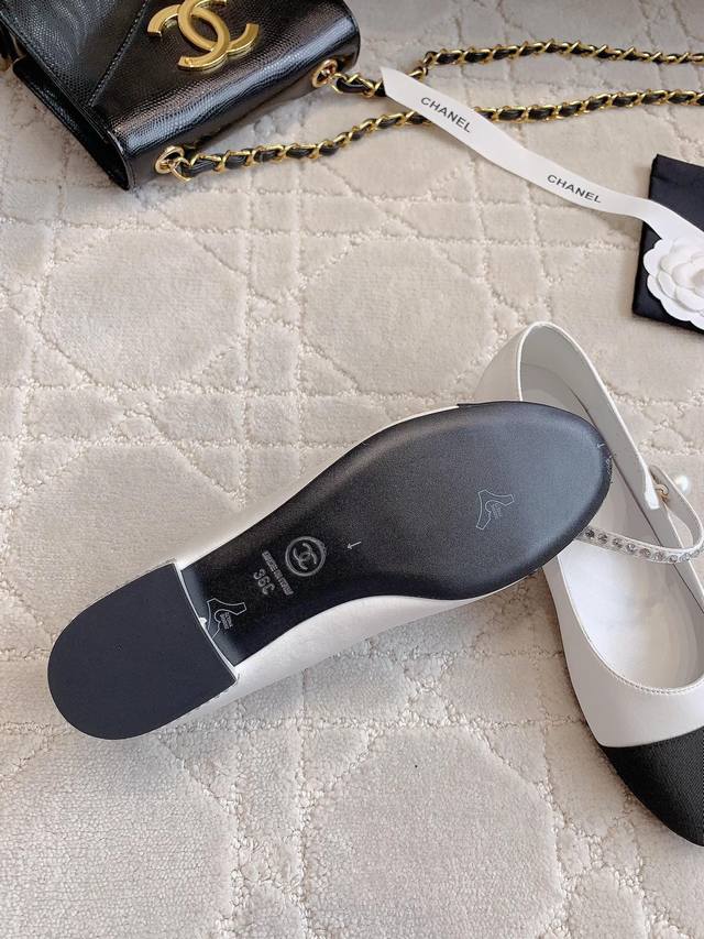 Chane* 新款平底玛丽珍单鞋 珍珠水钻点缀精致优雅 公主气质 万年百搭减龄款 上脚超级柔软舒适 任何穿搭都能轻松驾驭 鞋面原版羊皮 真丝 内里垫脚羊皮 意大