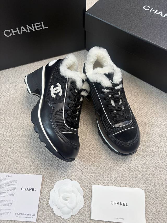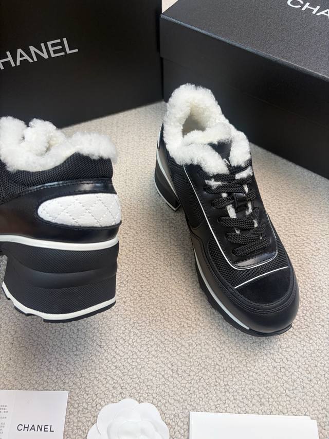 Chane* 25Ss 香奈儿高跟运动鞋 DDD 采用皮革与网面拼接的材质,兼具质感与透气性。鞋身带有品牌标志性的双C Logo,辨识度极高,有白色、黑色、粉白拼接三种配色,风格涵盖简约、酷感与甜美。 DDD 厚底款式,在提升时尚感的同时,还能起到一定的增高效果;系带设计贴合脚型,穿着舒适且便于调节松紧。融合了运动风与奢华感,既适合日常休闲,又能为造型增添高级感。 DDD 鞋面:牛皮 网布 DDD 跟高:4Cm DDD 大底:Tpu大底 DDD 码段:35-41 40.41定制不退换 DDD