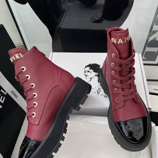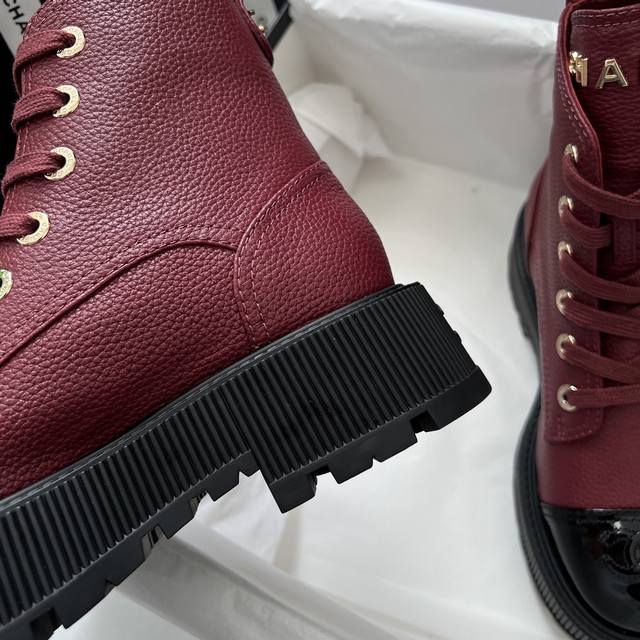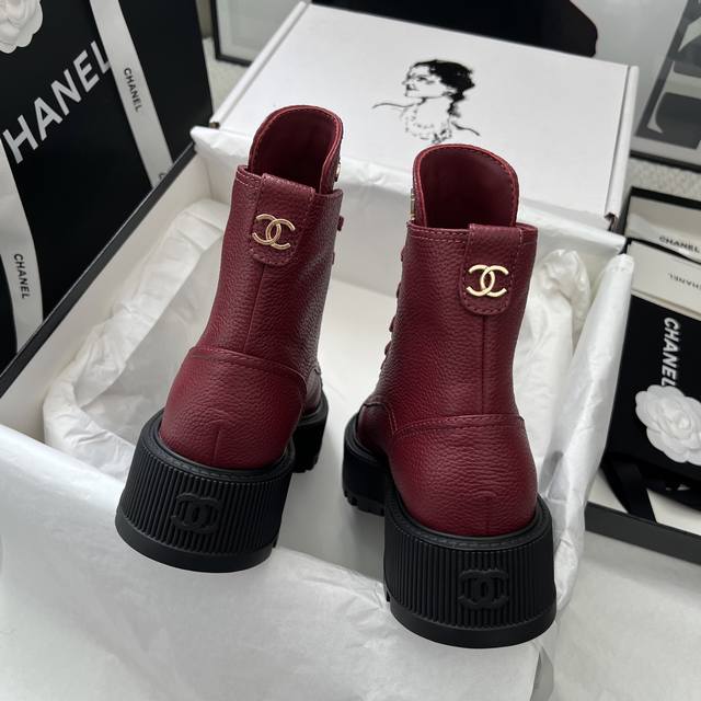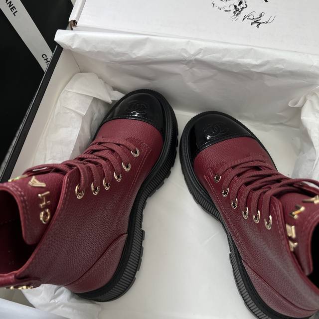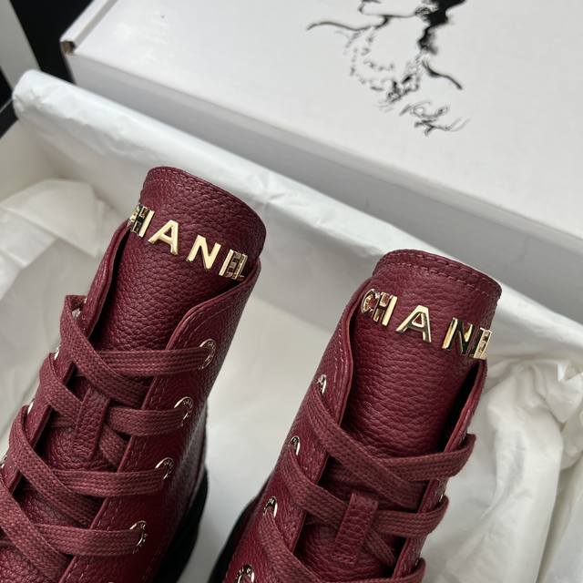 FFF Chane* DDD DDD 代购级别 DDD * 香奈儿 厚底短靴 荔枝纹小牛皮+全粒面羊皮内里, 厚底设计增高约5Cm, 鞋舌Chanel金属字母,鞋头双C刺绣 +后跟Logo,细节满分,金属鞋带孔 粗绳鞋带,机车风十足,酷飒又时髦 DDD 专柜15300正品购入!!!正品开发 各处细节正品对比,均可随意对比专柜正品!实物比图片完美, DDD 关于材质. Fabric Content DDD 面料 : 鞋面定制原版一致 摔纹牛皮 DDD 鞋底 : 定制独家开模Tpu双C防滑大底底 DDD 内里